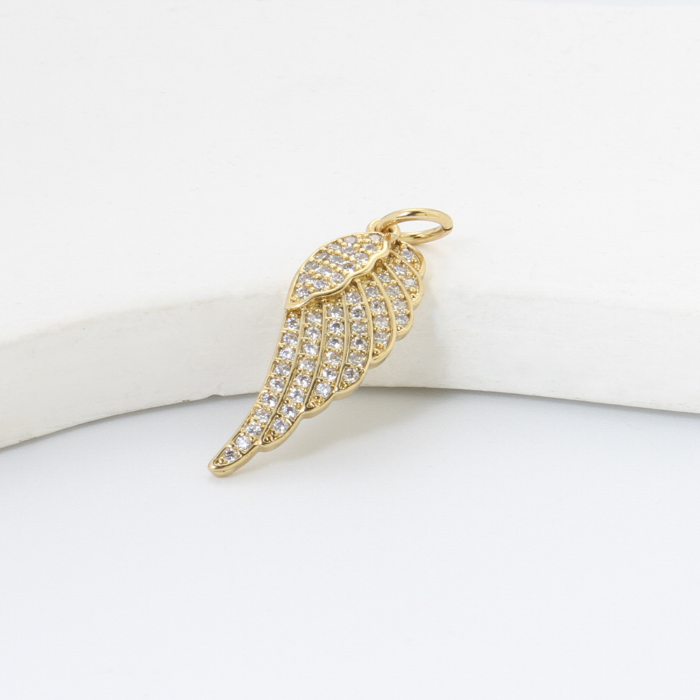 Cubique Pendentif en laiton zircon pavent, forme de plume, Placage, DIY & pavé de micro zircon, plus de couleurs à choisir, 22.6x8.4x2.2mm, Vendu par PC