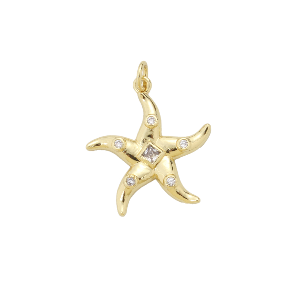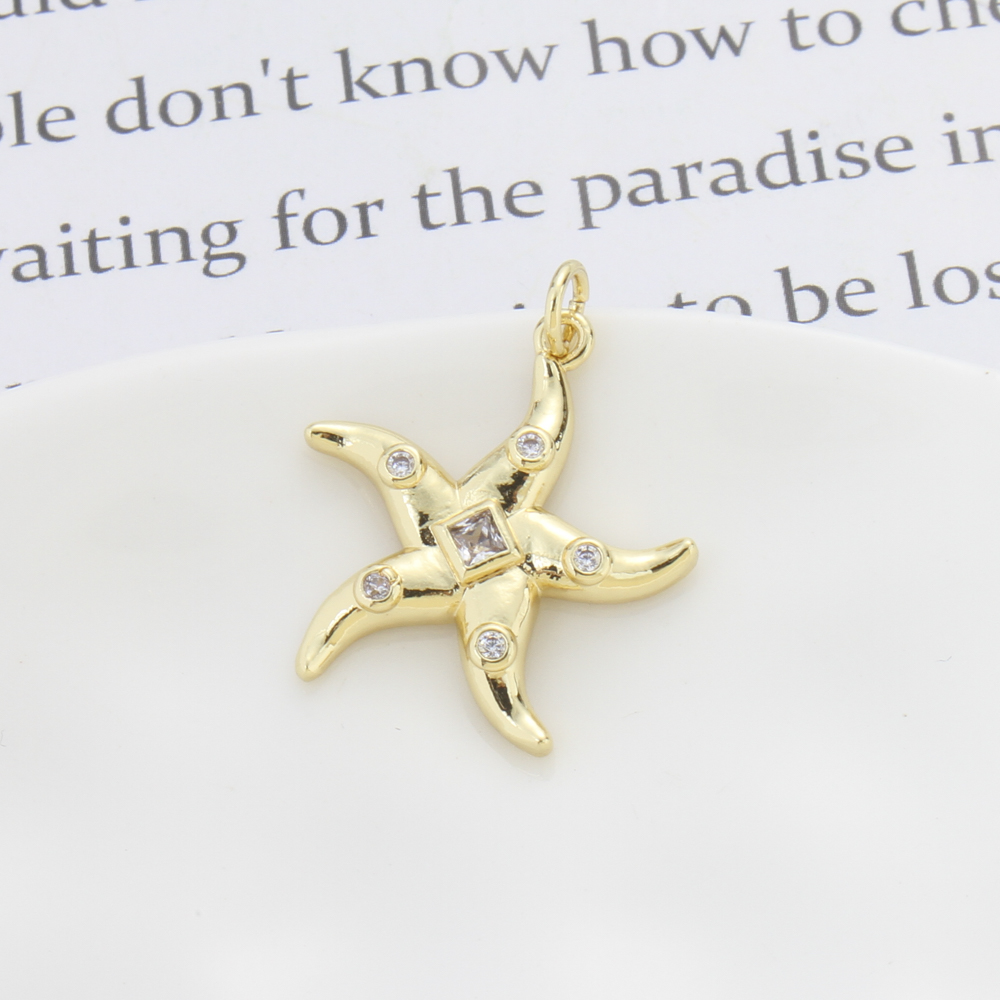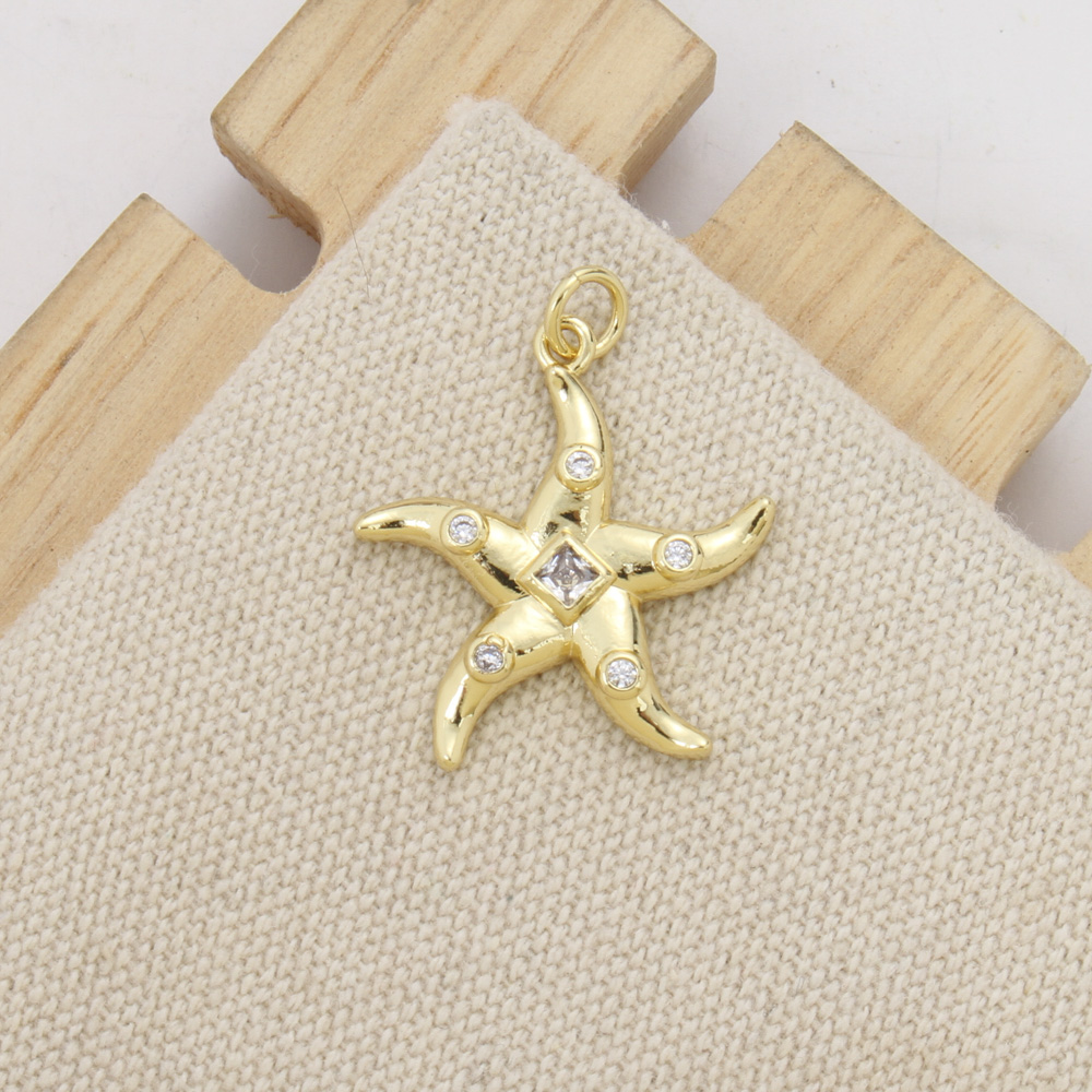 Cubique Pendentif en laiton zircon pavent, étoile de mer, Placage, DIY & pavé de micro zircon, plus de couleurs à choisir, 22.6x20x3mm, Vendu par PC