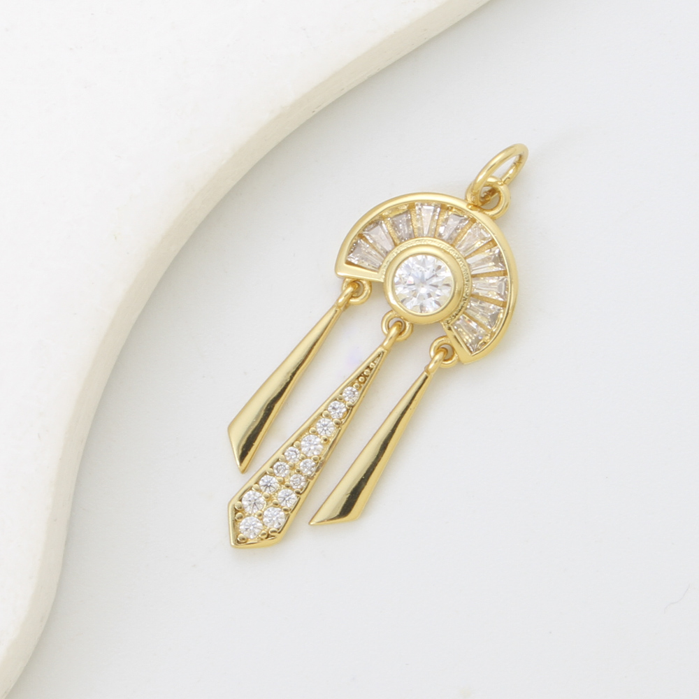 Cubique Pendentif en laiton zircon pavent, Attrapeur de rêves, Placage, DIY & pavé de micro zircon, Or, 28x11.8x3.4mm, Vendu par PC