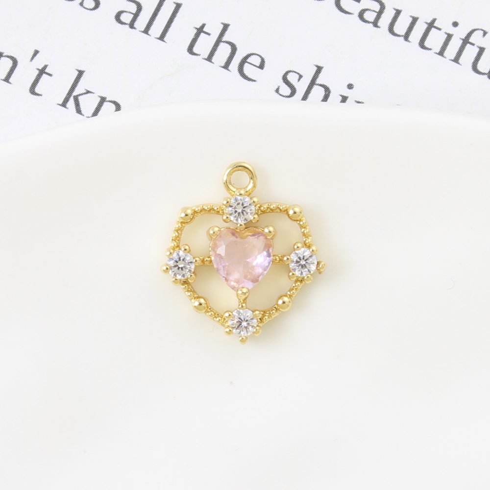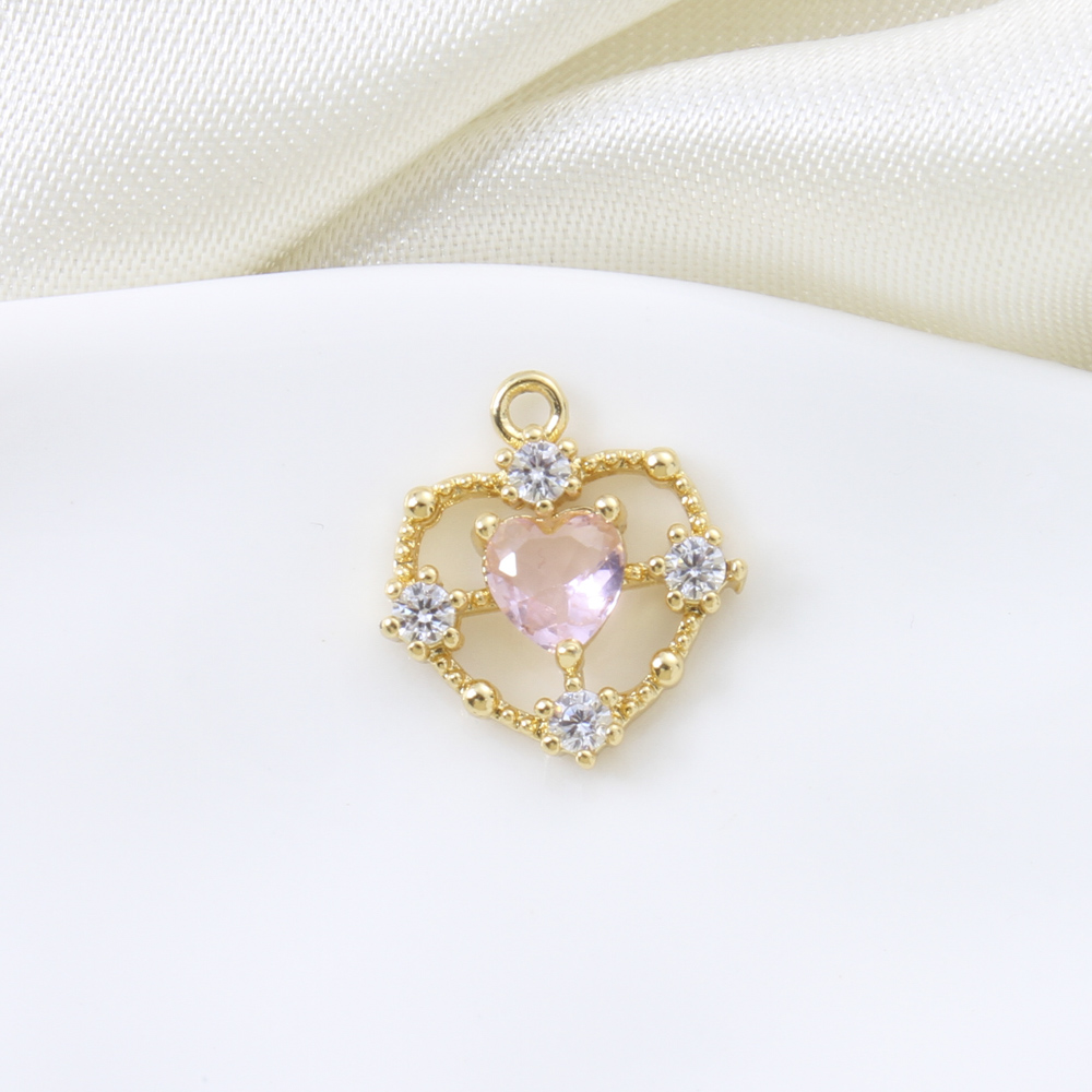 Cubique Pendentif en laiton zircon pavent, coeur, Placage, DIY & pavé de micro zircon, plus de couleurs à choisir, 14.2x15.6x1.4mm, Vendu par PC