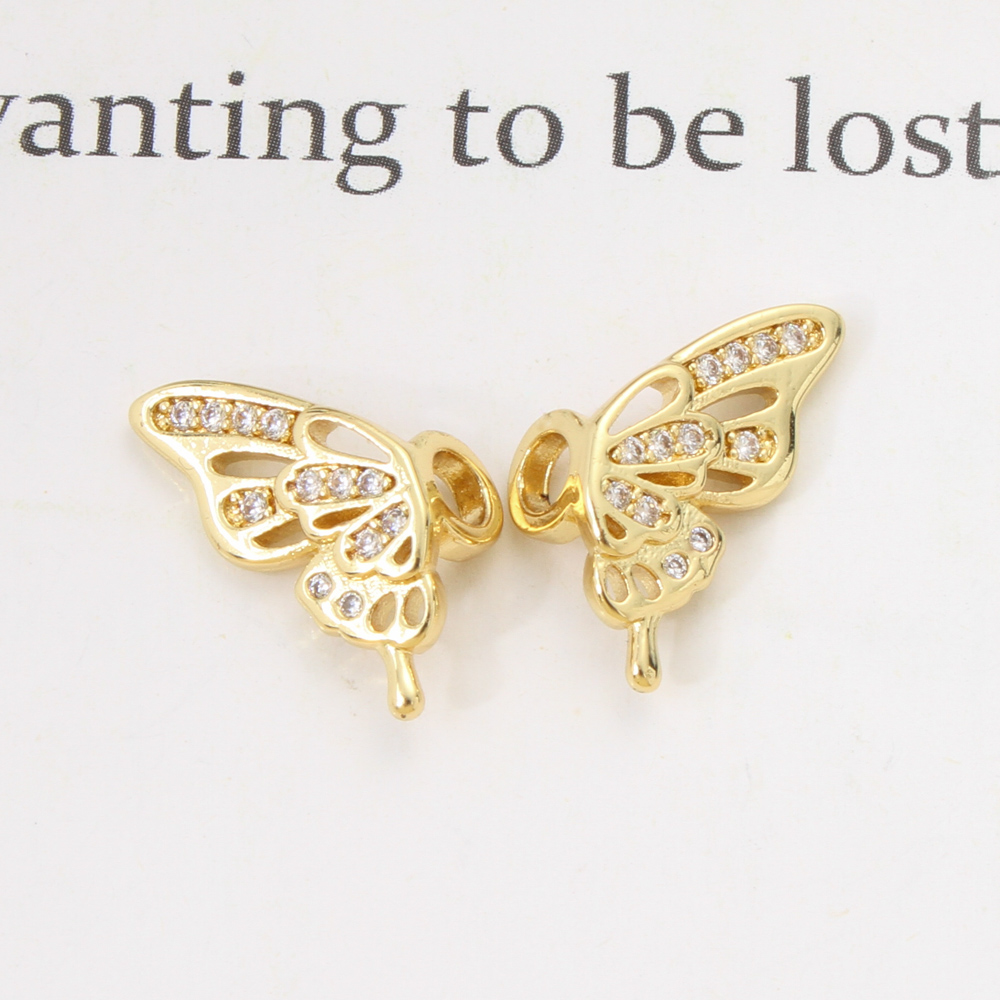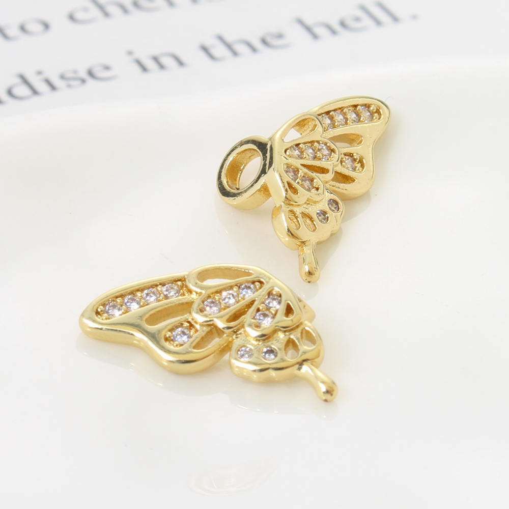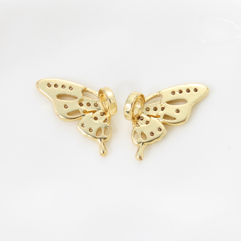 Cubique Pendentif en laiton zircon pavent, papillon, Placage, DIY & pavé de micro zircon, doré, 9x16.5x2mm, Vendu par PC