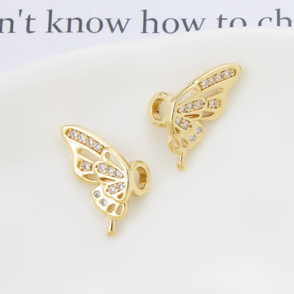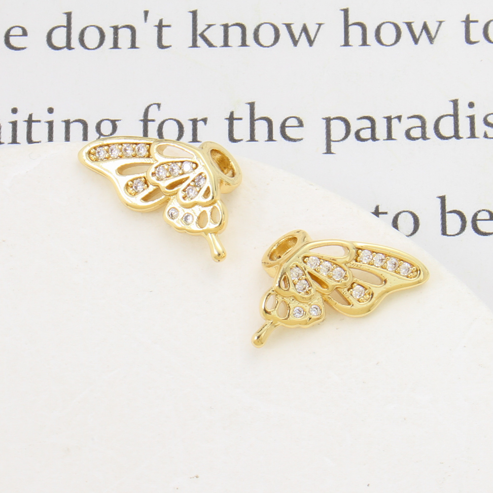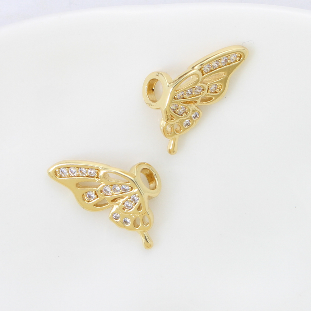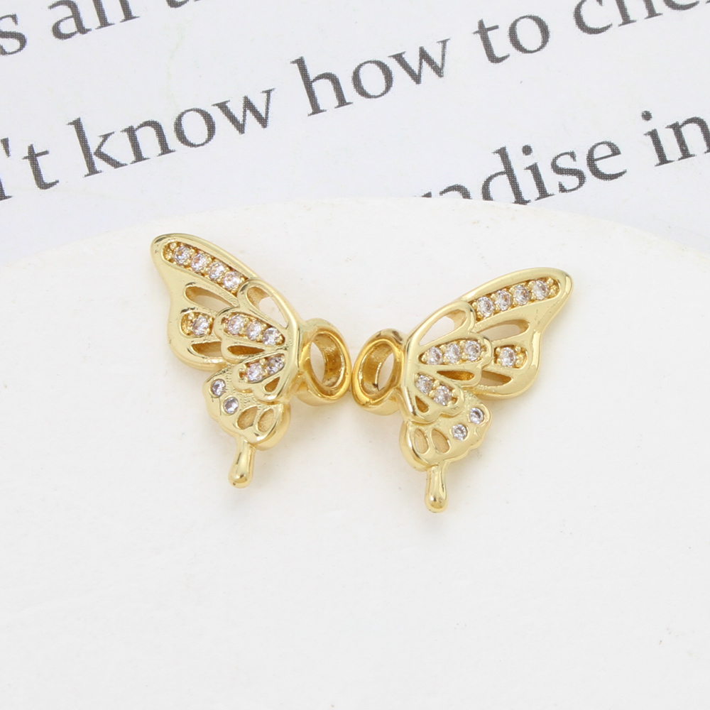 Cubique Pendentif en laiton zircon pavent, papillon, Placage, DIY & pavé de micro zircon, doré, 9x16.5x2mm, Vendu par PC