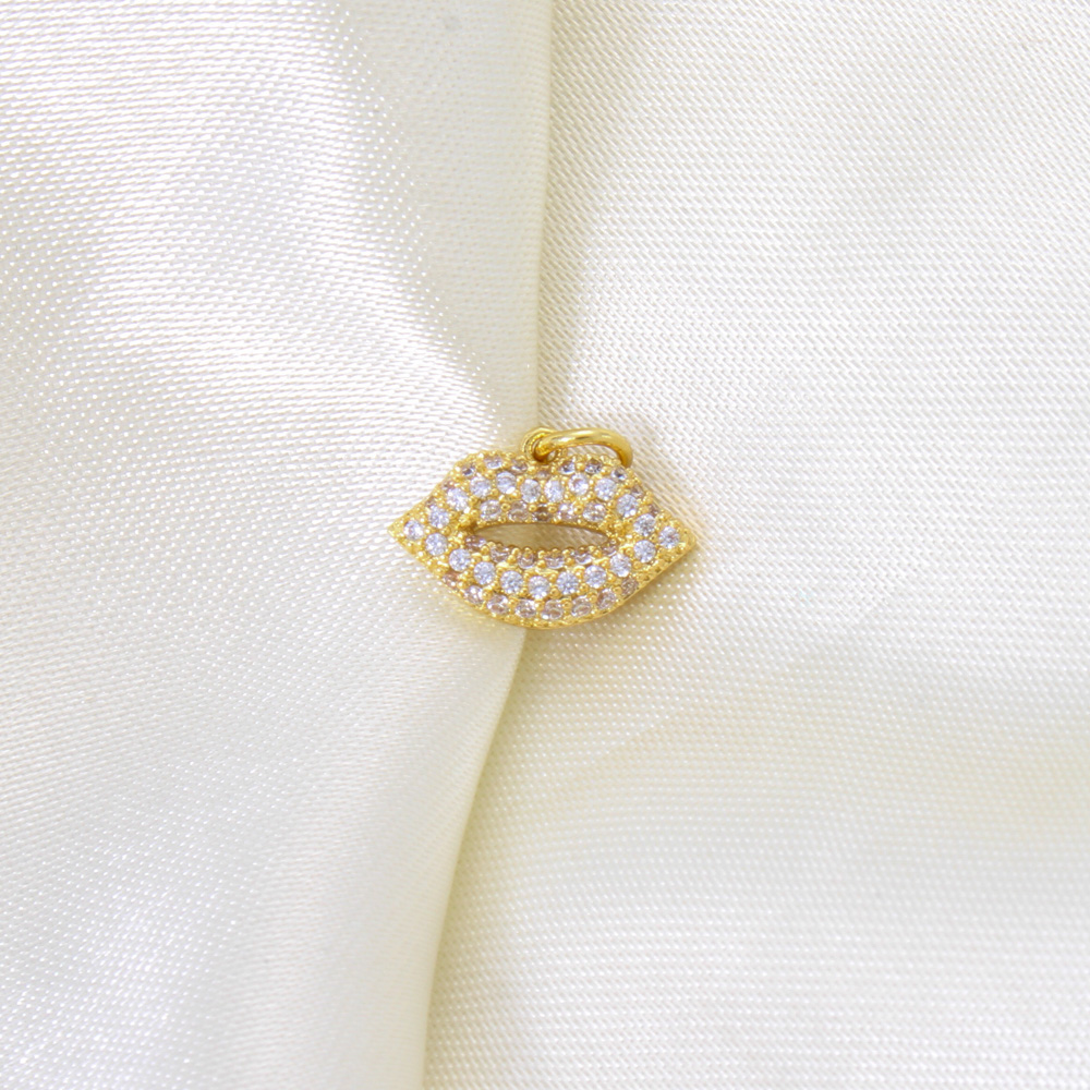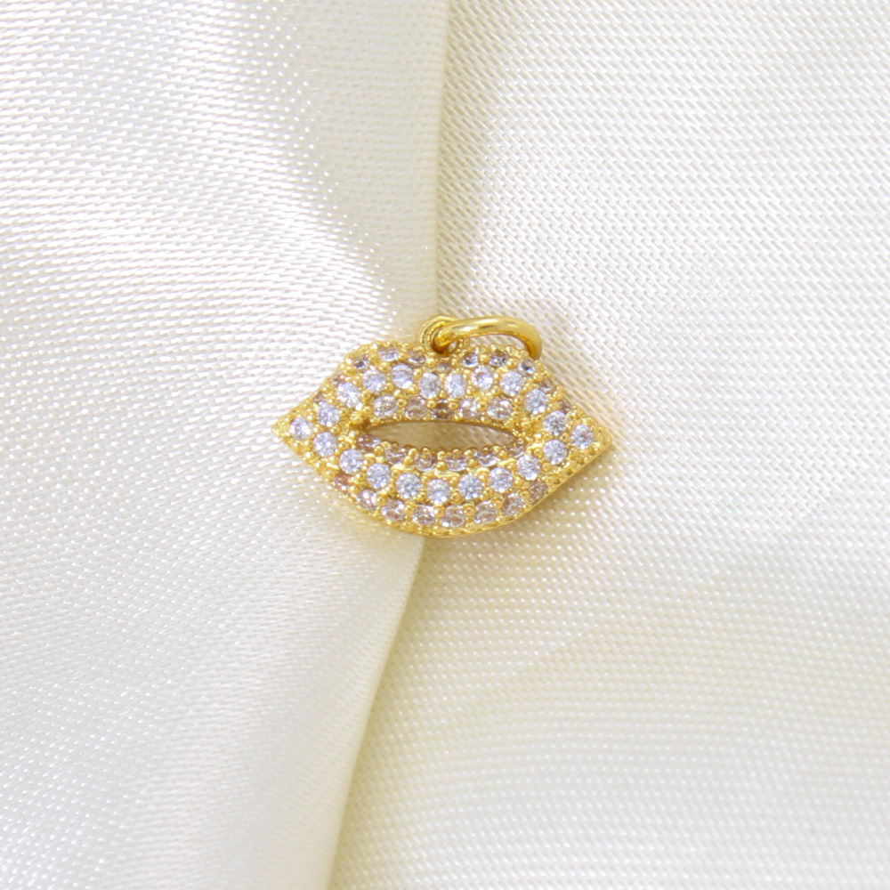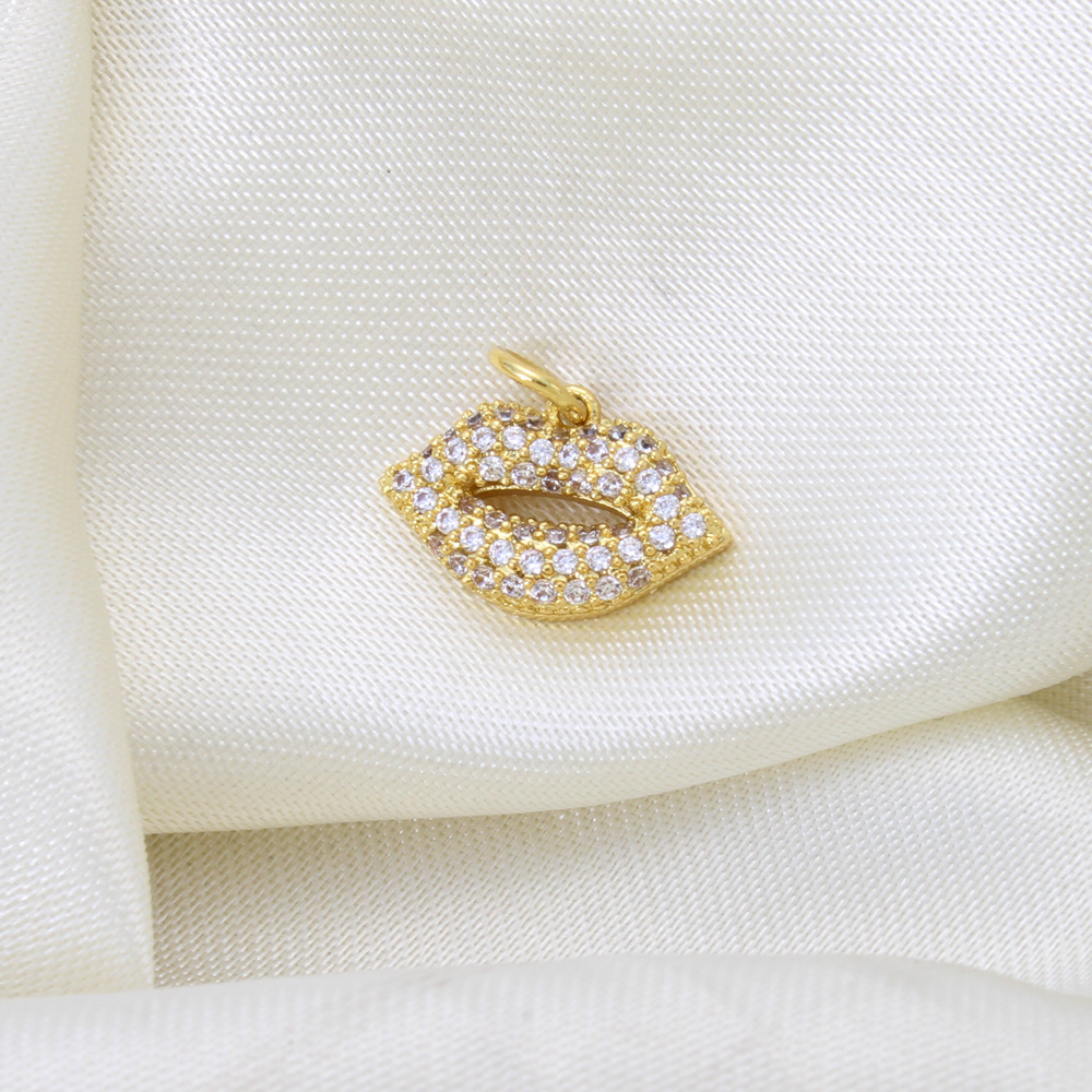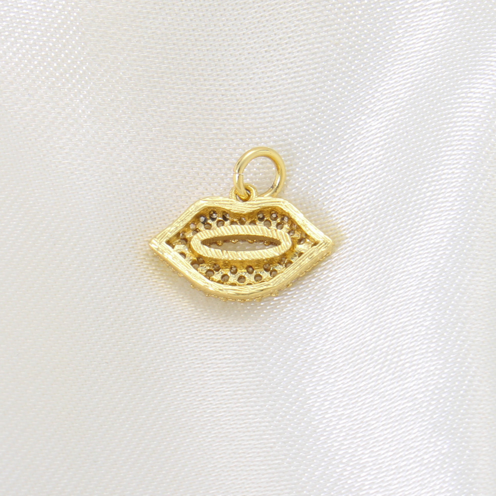 Cubique Pendentif en laiton zircon pavent, lèvre, Placage, DIY & pavé de micro zircon, doré, 10x15x3mm, Vendu par PC