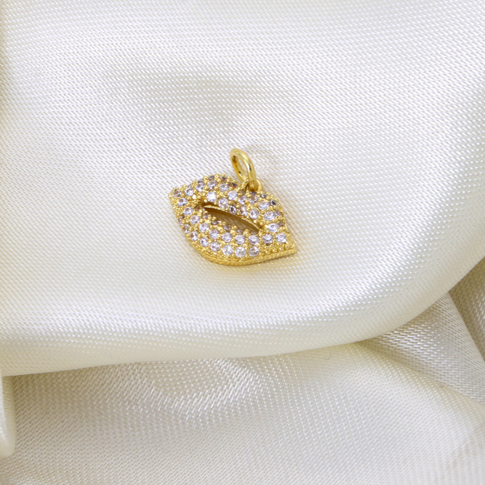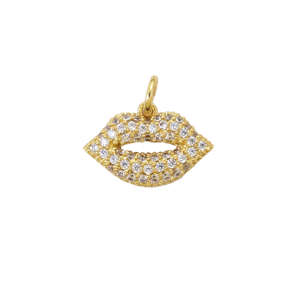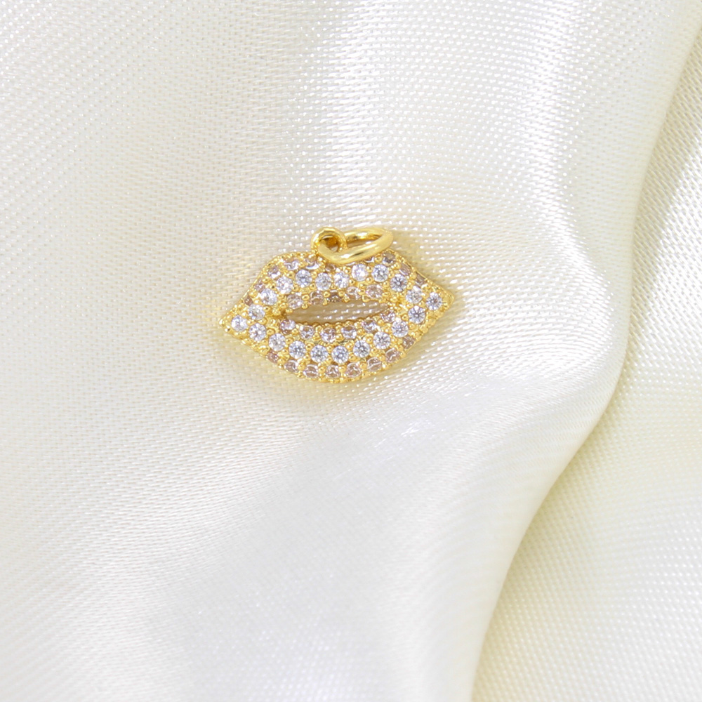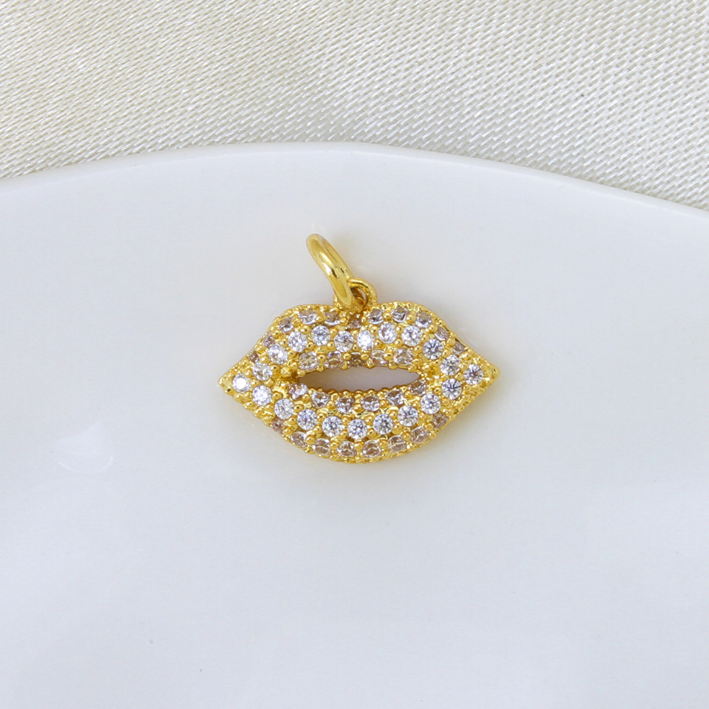 Cubique Pendentif en laiton zircon pavent, lèvre, Placage, DIY & pavé de micro zircon, doré, 10x15x3mm, Vendu par PC