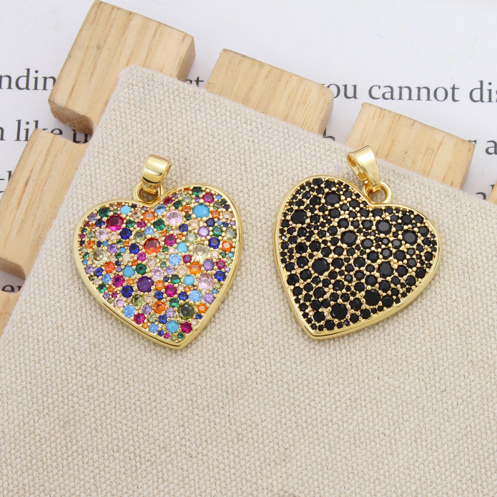 Cubique Pendentif en laiton zircon pavent, coeur, Placage, DIY & pavé de micro zircon, plus de couleurs à choisir, 28.5x27x3.8mm, Vendu par PC