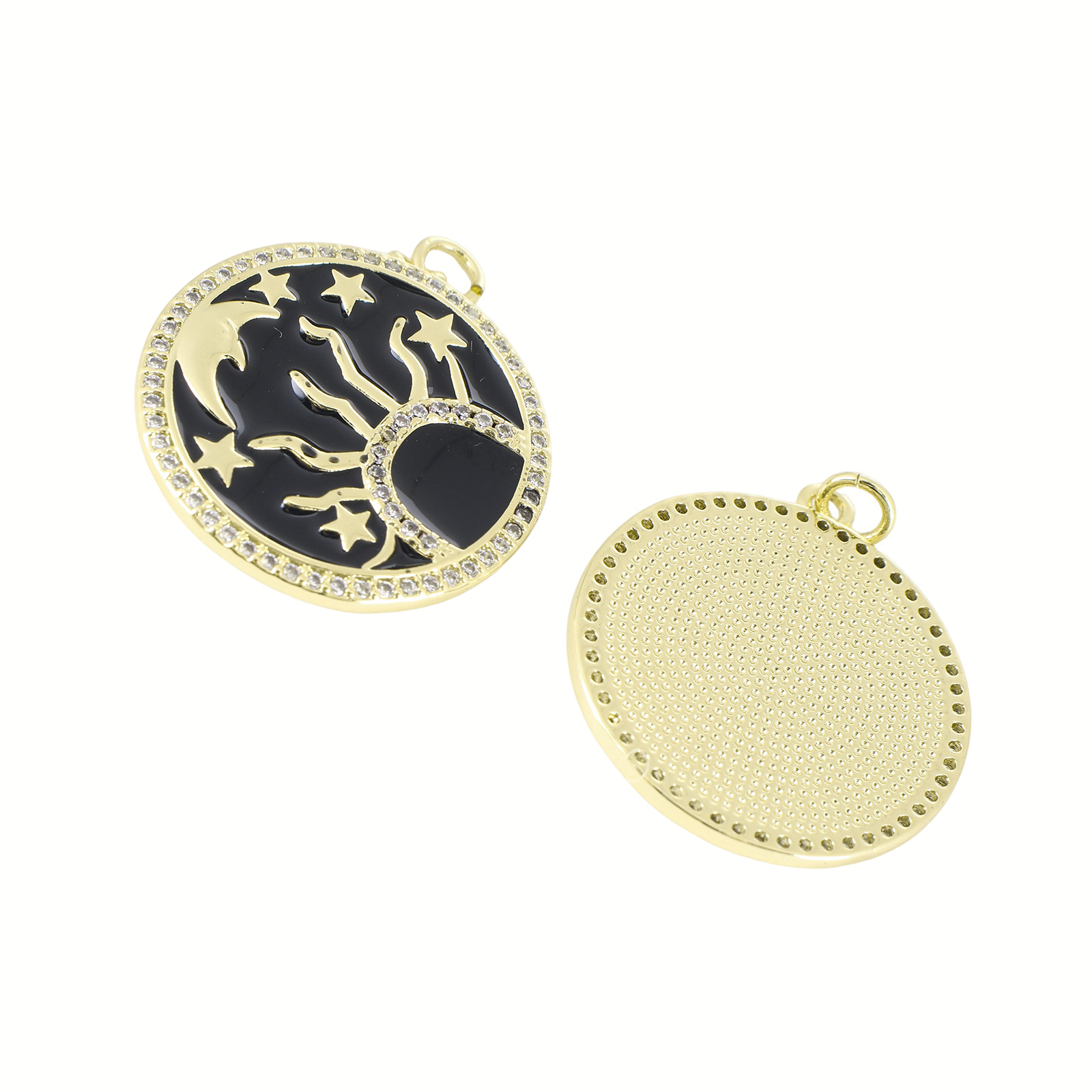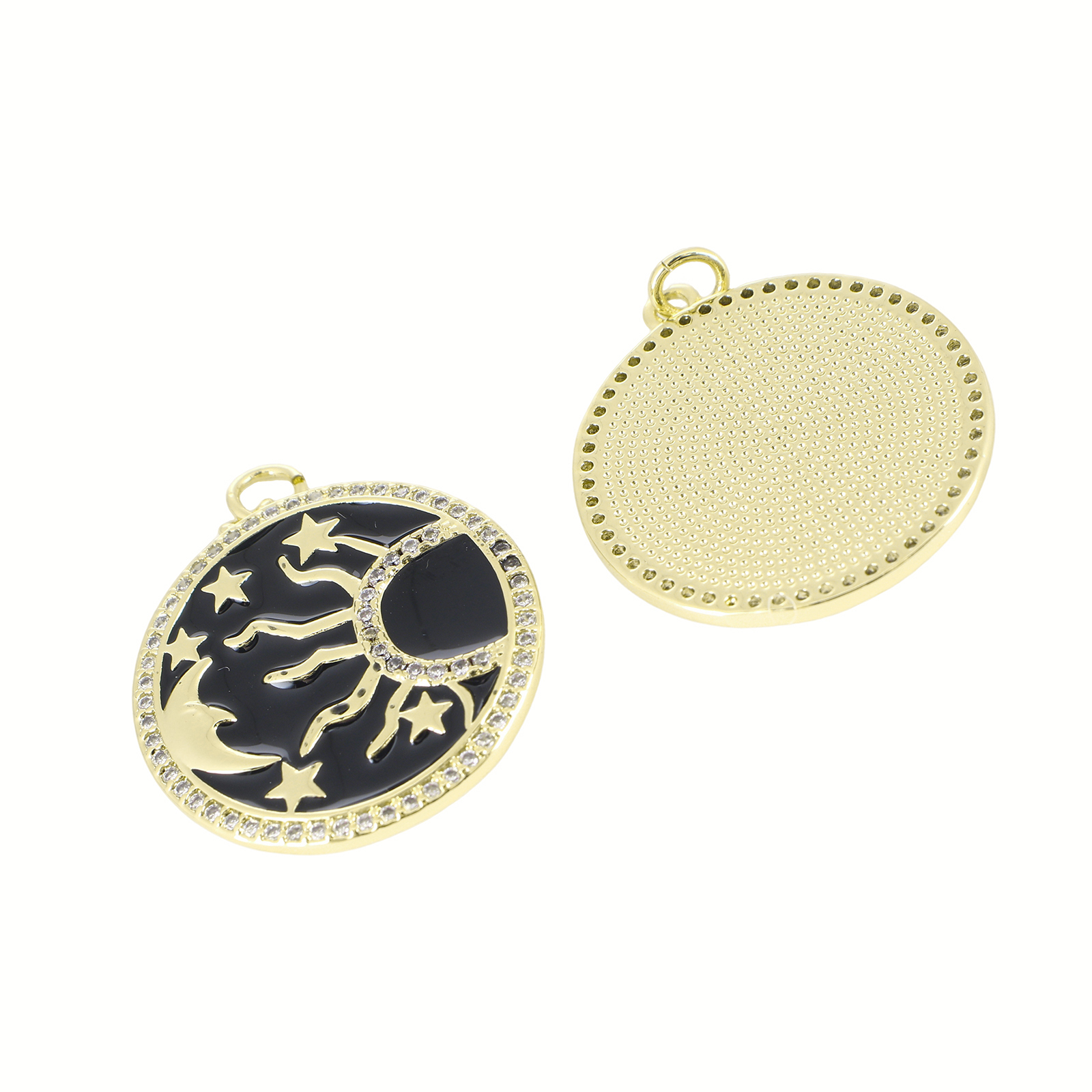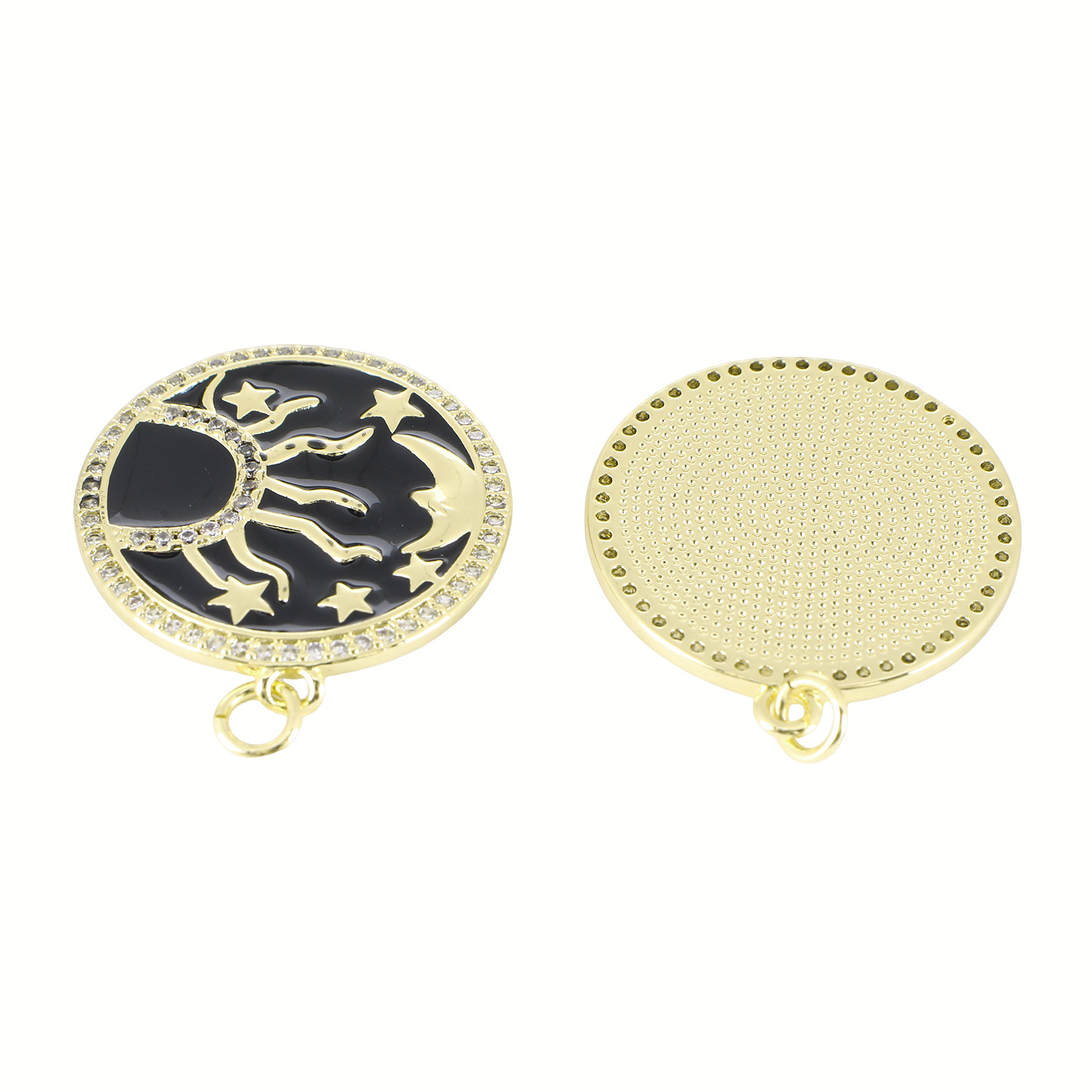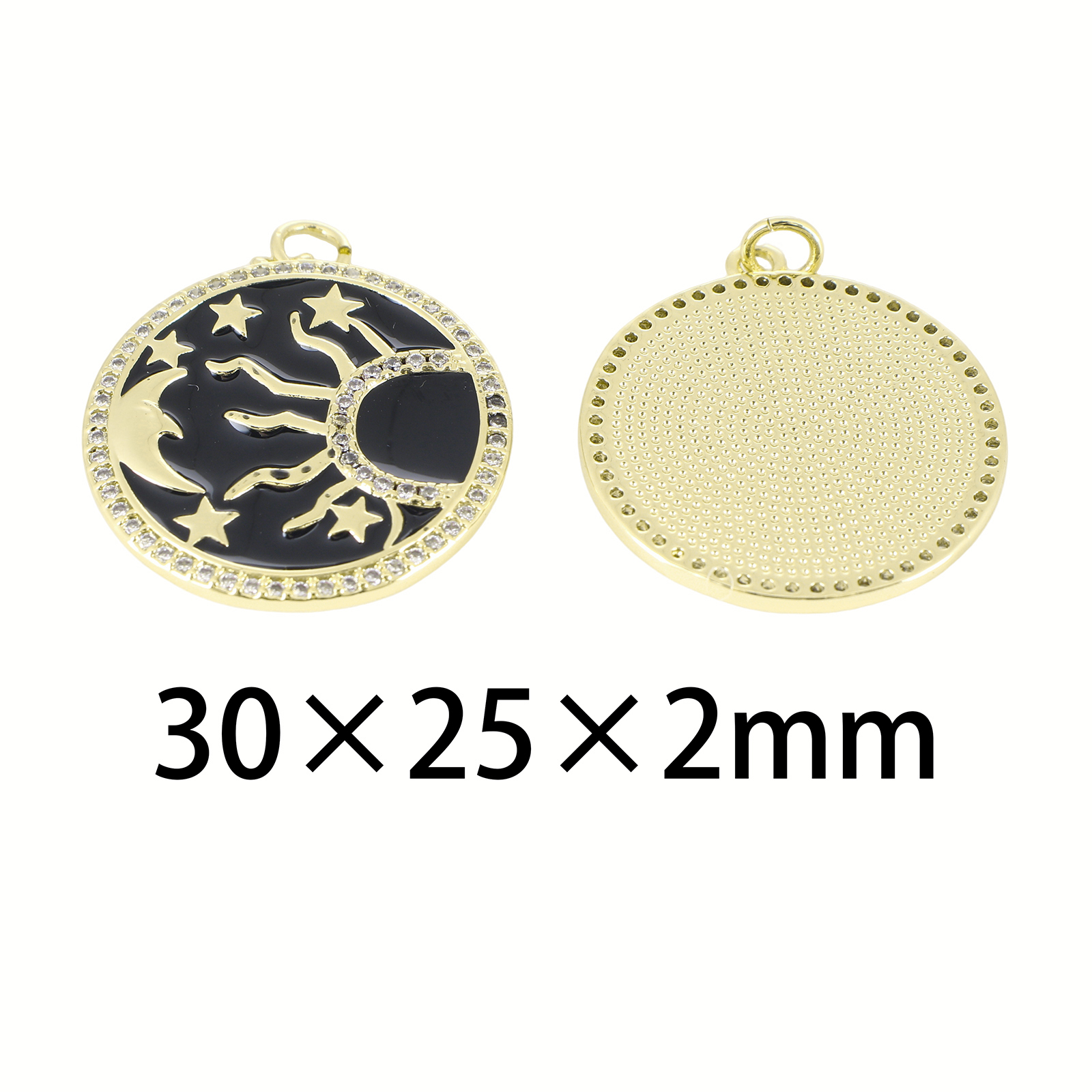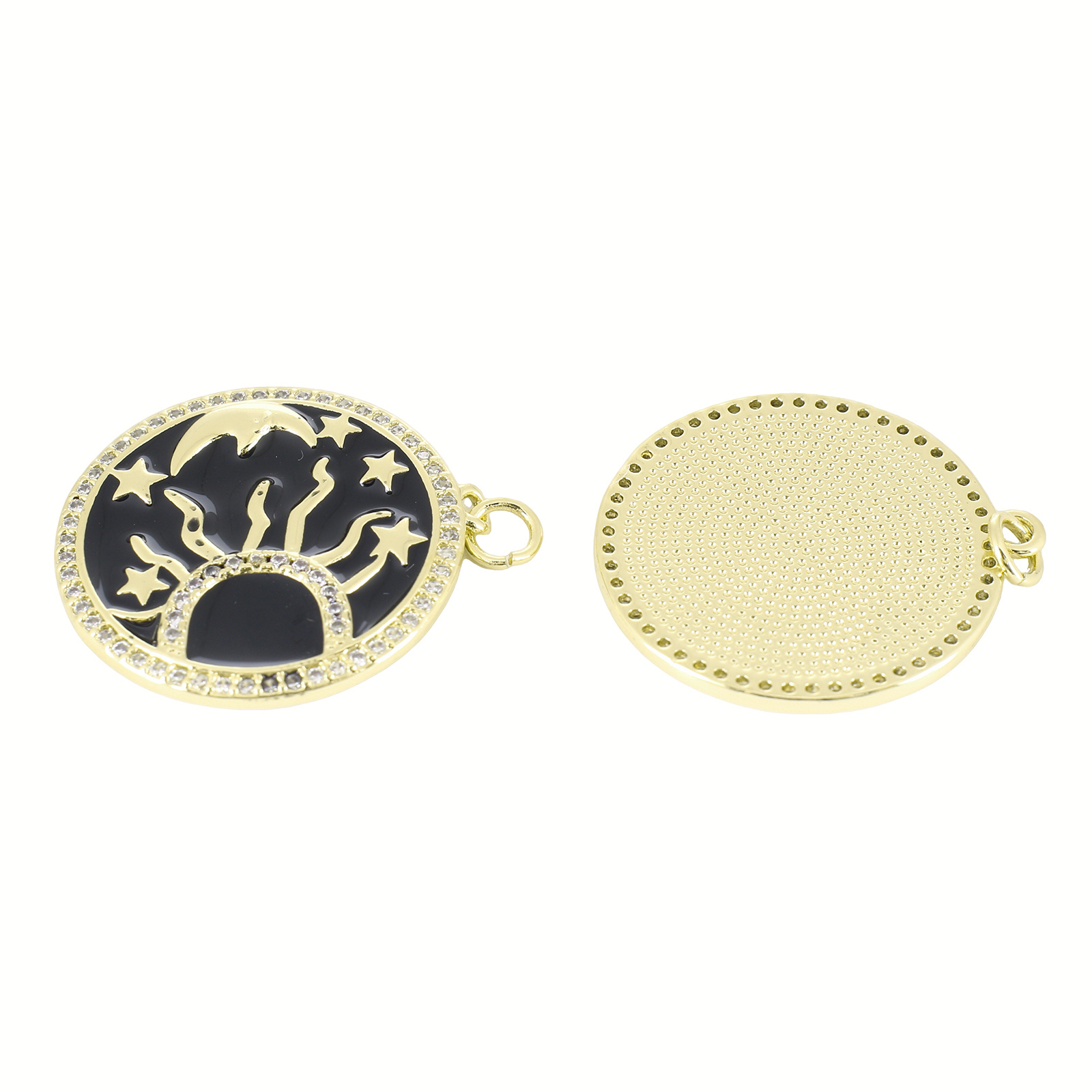 Cubique Pendentif en laiton zircon pavent, Plat rond, Placage de couleur d'or, DIY & pavé de micro zircon & émail, 30x25x2mm, Vendu par PC
