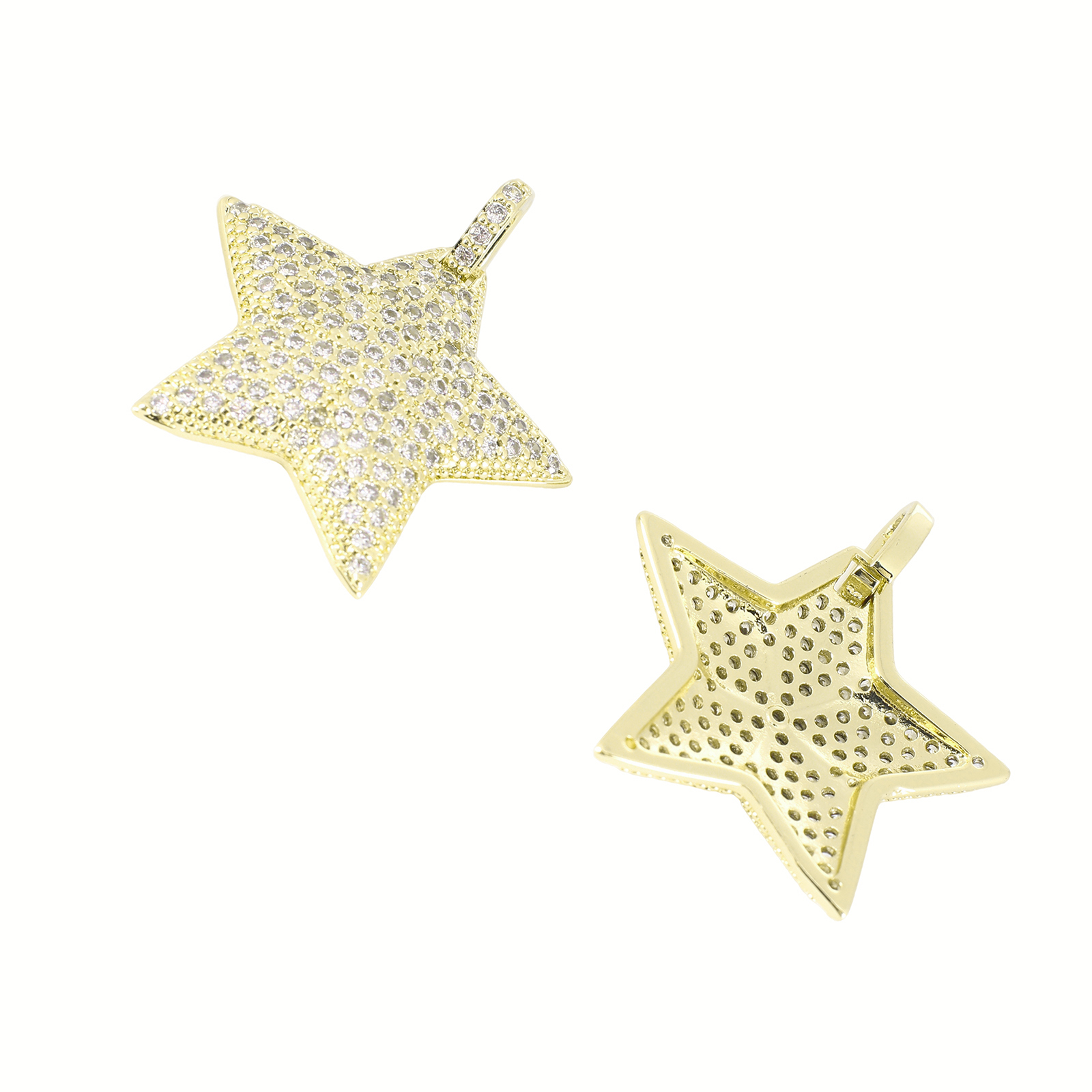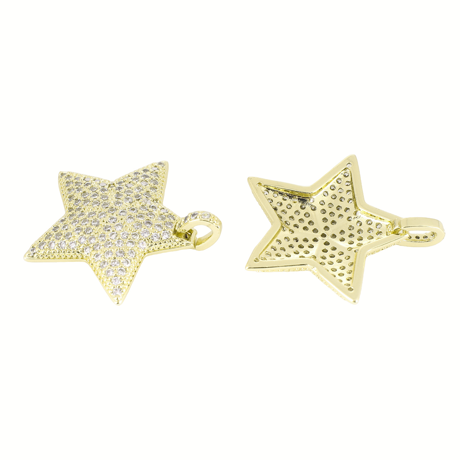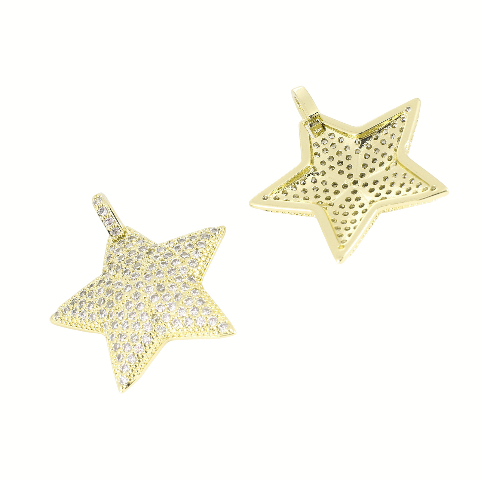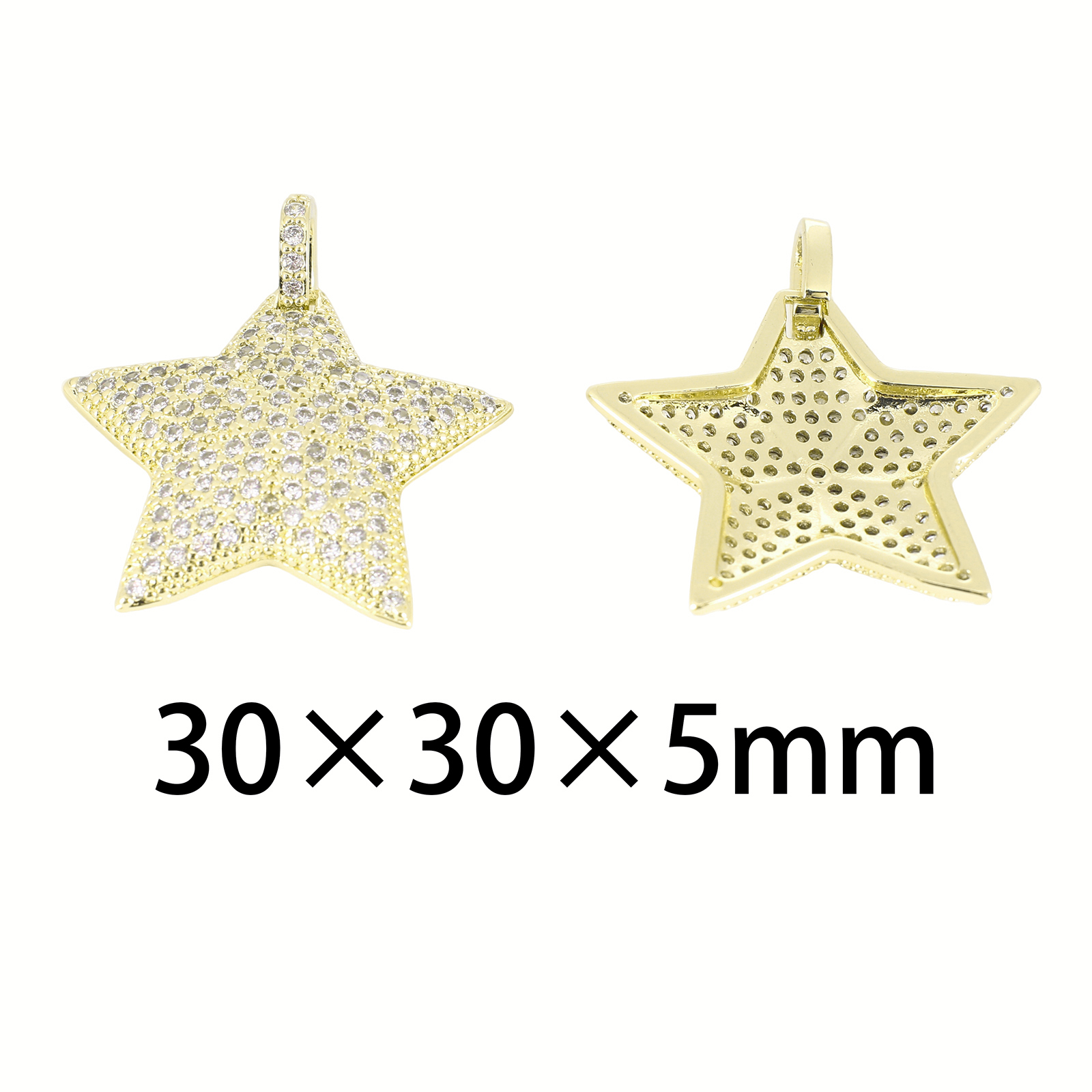 Cubique Pendentif en laiton zircon pavent, étoile, Placage de couleur d'or, DIY & pavé de micro zircon, 30x30x5mm, Vendu par PC