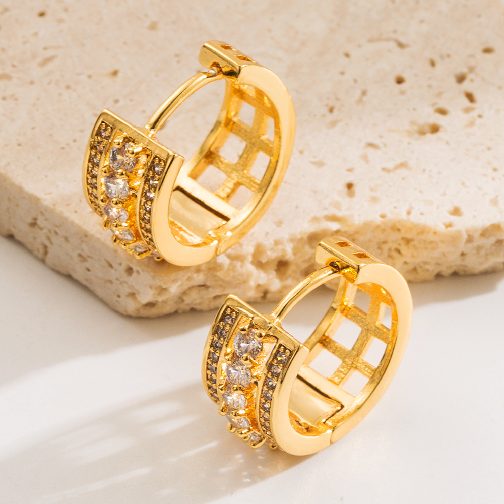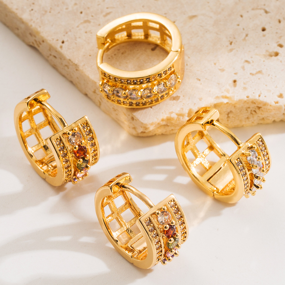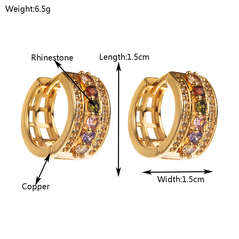 Cuivre Huggie Anneau d'oreille, Placage de couleur d'or, pour femme & avec strass & creux, plus de couleurs à choisir, 15x15mm, Vendu par paire