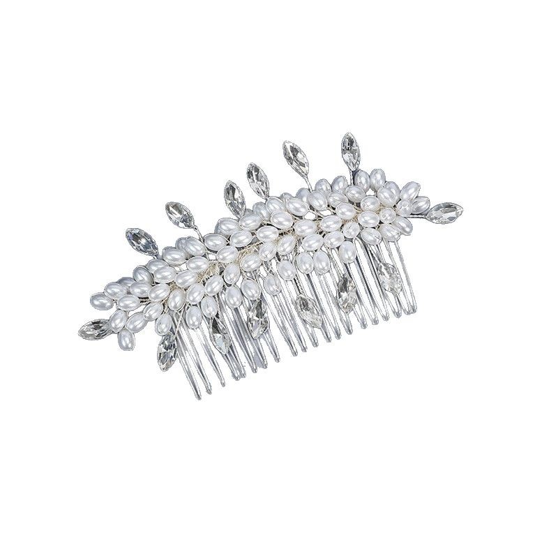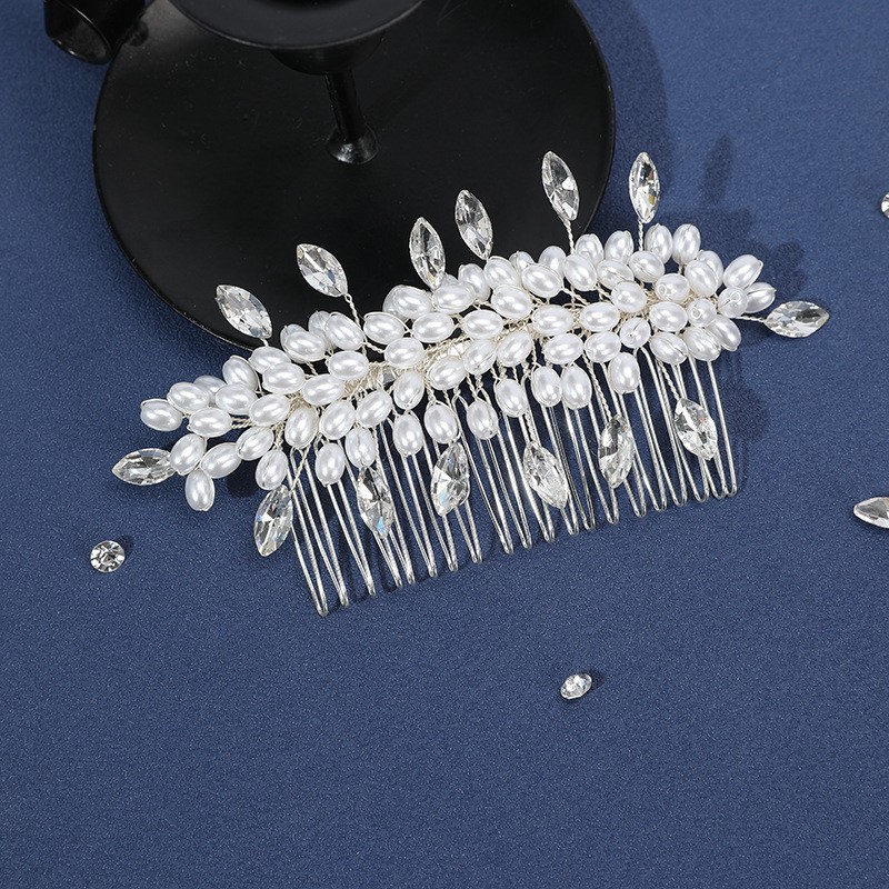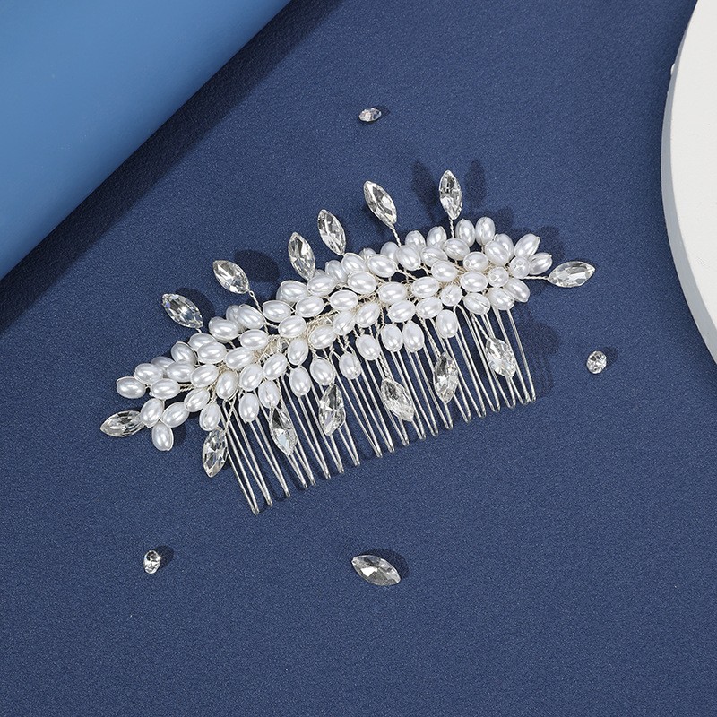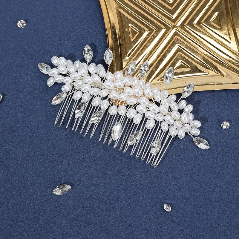 Décoratif Peigne nuptiale de cheveux, alliage de zinc, avec fil en laiton & cristal & perle de plastique, fait à la main, bijoux de mode & pour femme, argent, Vendu par PC