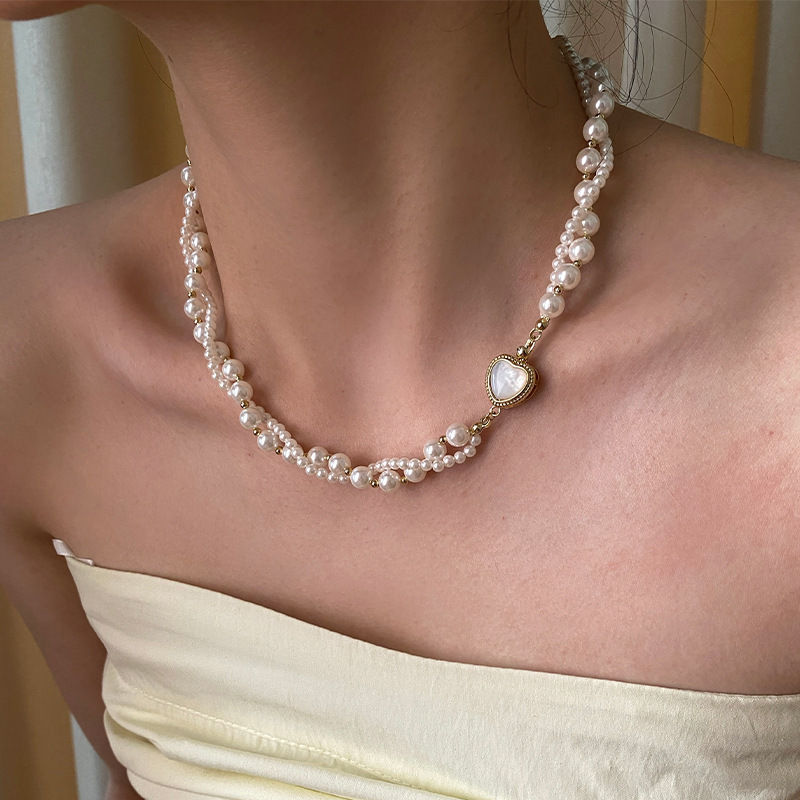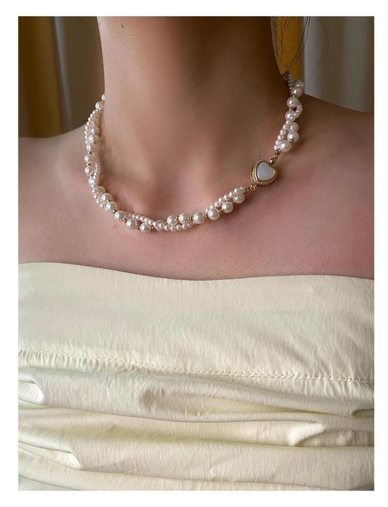 Des billes de verre collier de chandail, avec coquille blanche & laiton, pomme de terre, Placage de couleur d'or, bijoux de mode, plus de couleurs à choisir, 3x6mm, Vendu par brin