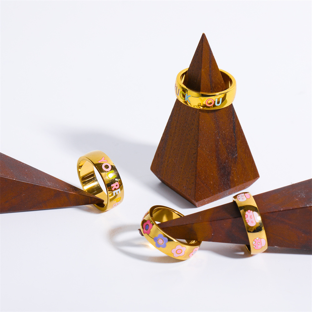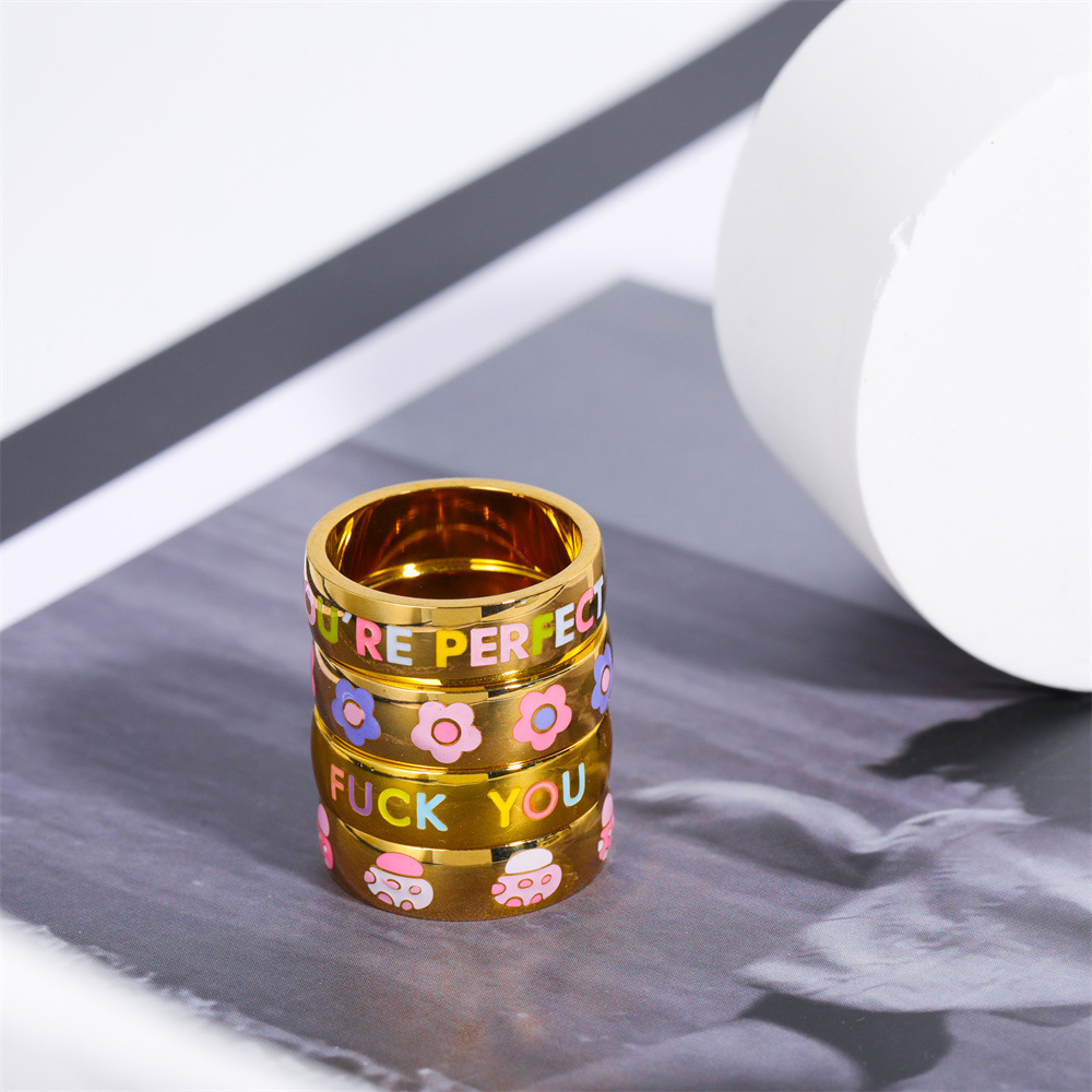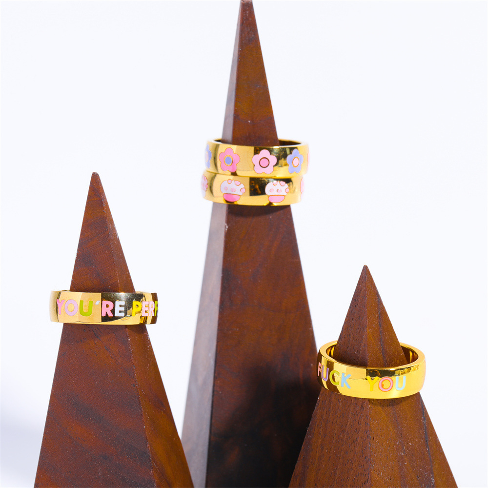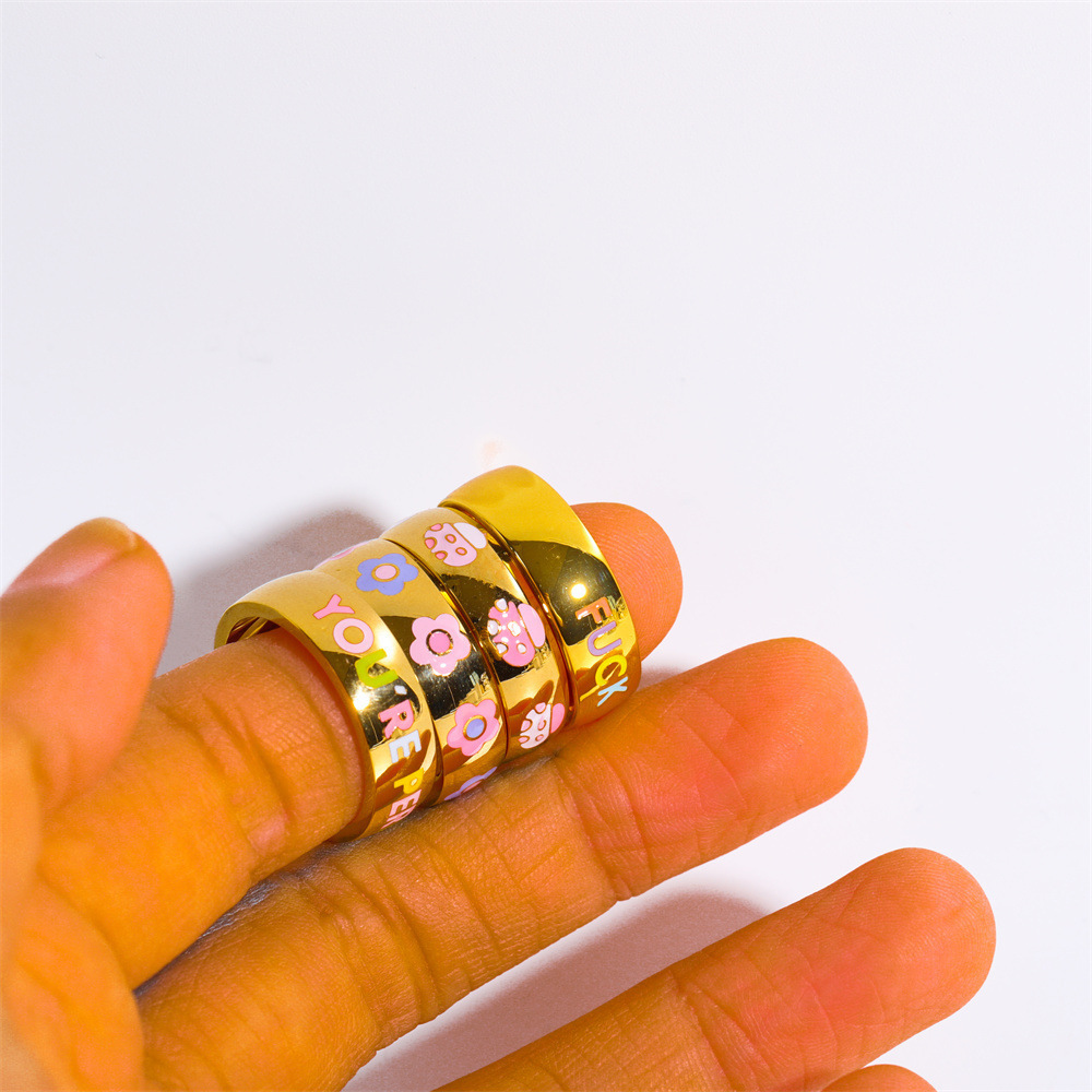 Émail Bague en Acier inoxydable , Acier inoxydable 304, Placage ionique sous vide, normes différentes pour le choix & pour femme & émail, plus de couleurs à choisir, Vendu par PC