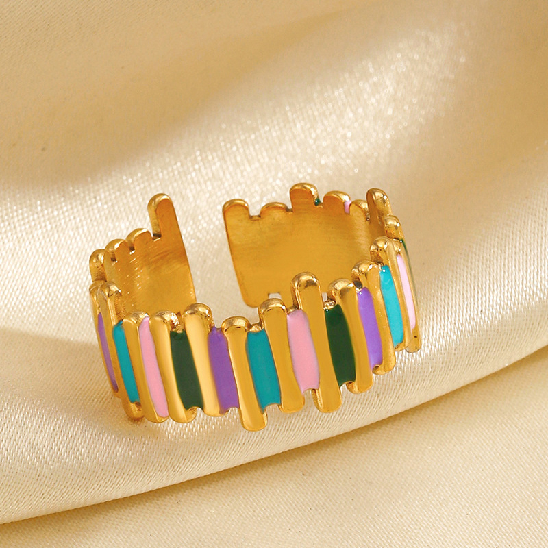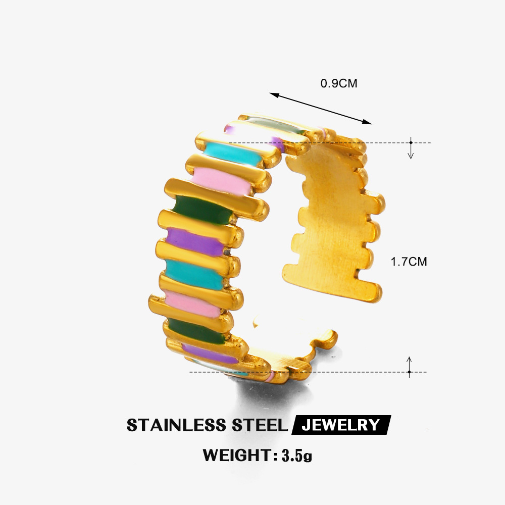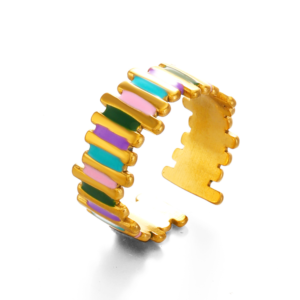 Émail Bague en Acier inoxydable , Acier inoxydable 304, Placage de couleur d'or, bijoux de mode & pour femme & émail, multicolore, Vendu par PC