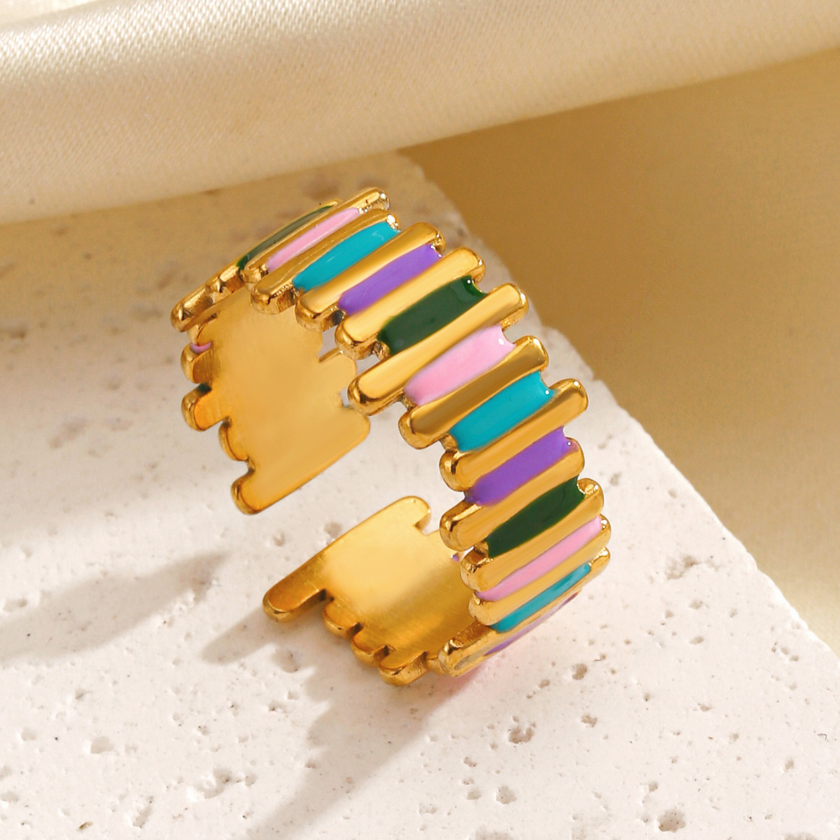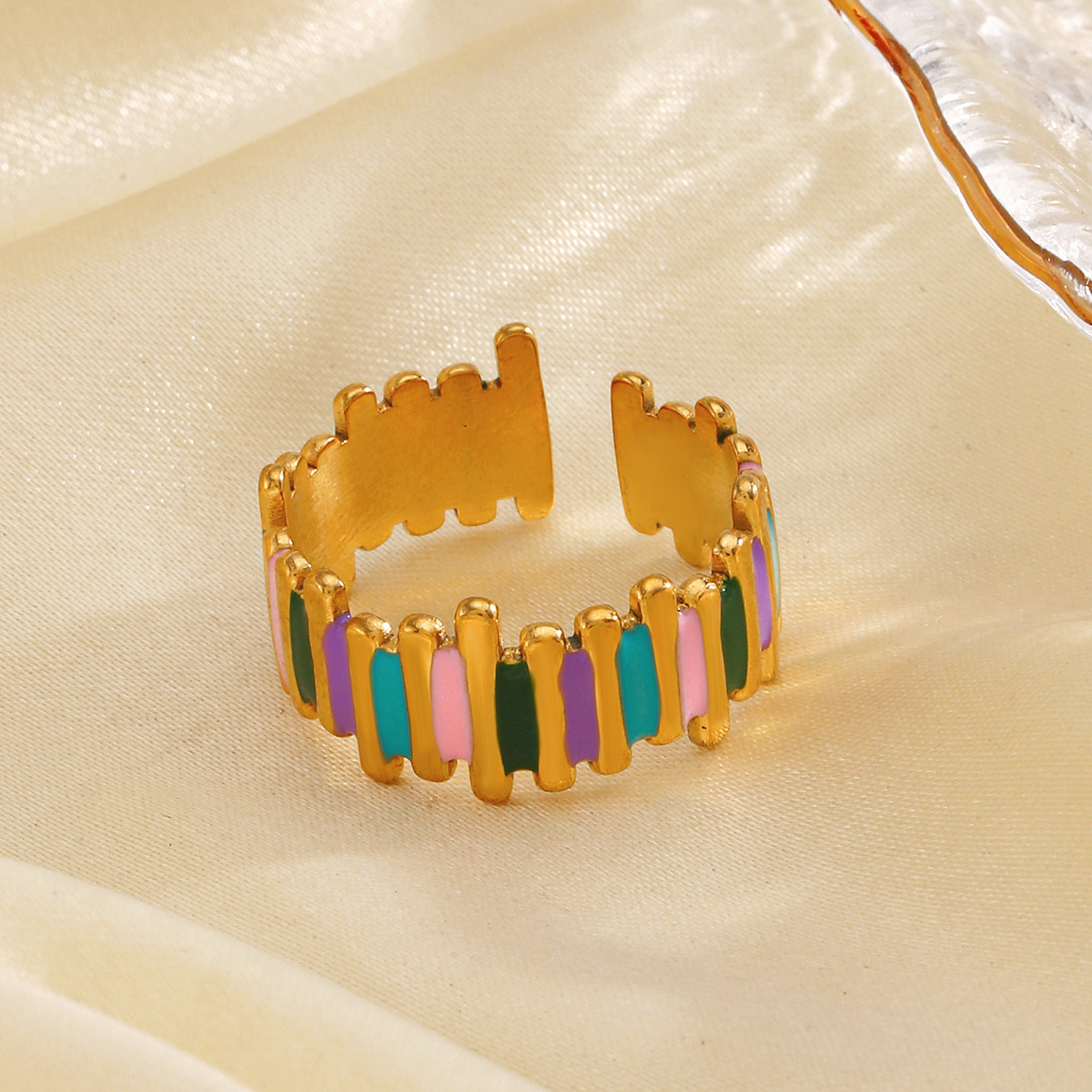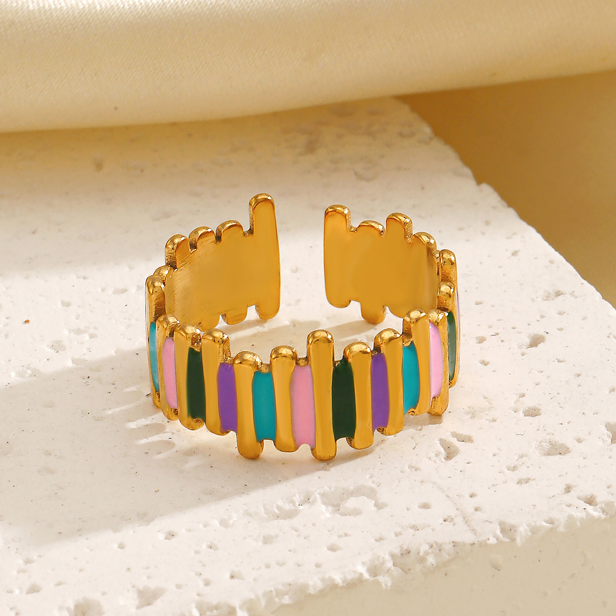 Émail Bague en Acier inoxydable , Acier inoxydable 304, Placage de couleur d'or, bijoux de mode & pour femme & émail, multicolore, Vendu par PC