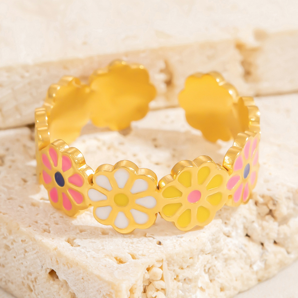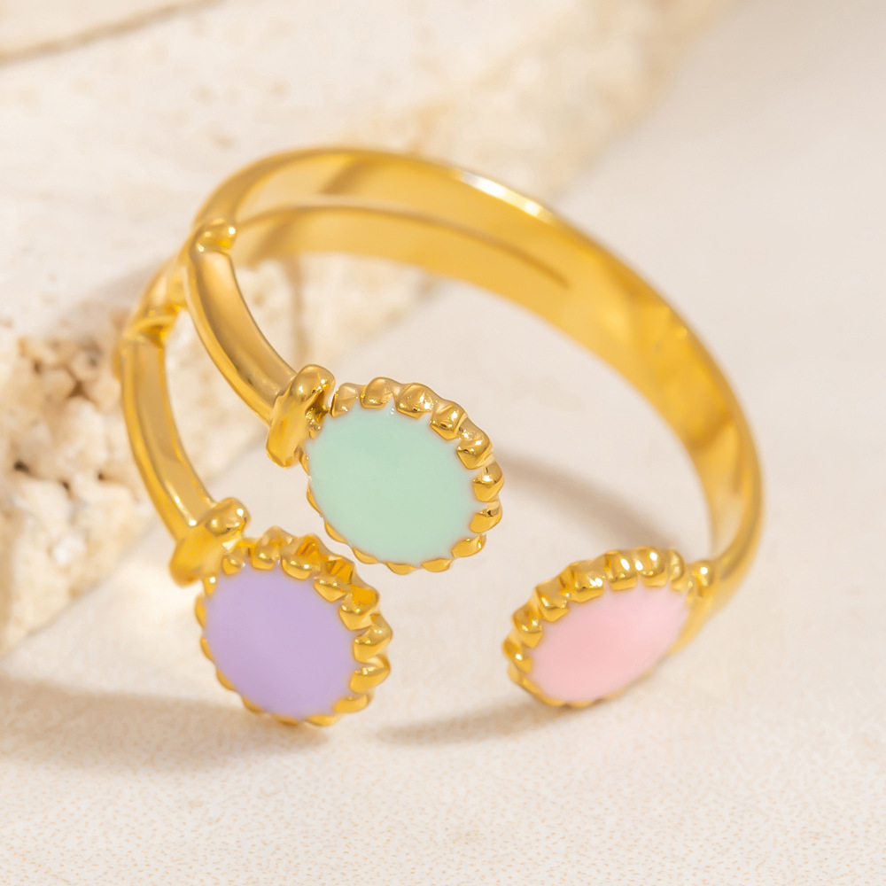 Émail Bague en Acier inoxydable , Acier inoxydable 304, avec émail, Placage de couleur d'or, bijoux de mode & modèles différents pour le choix, doré, Vendu par PC
