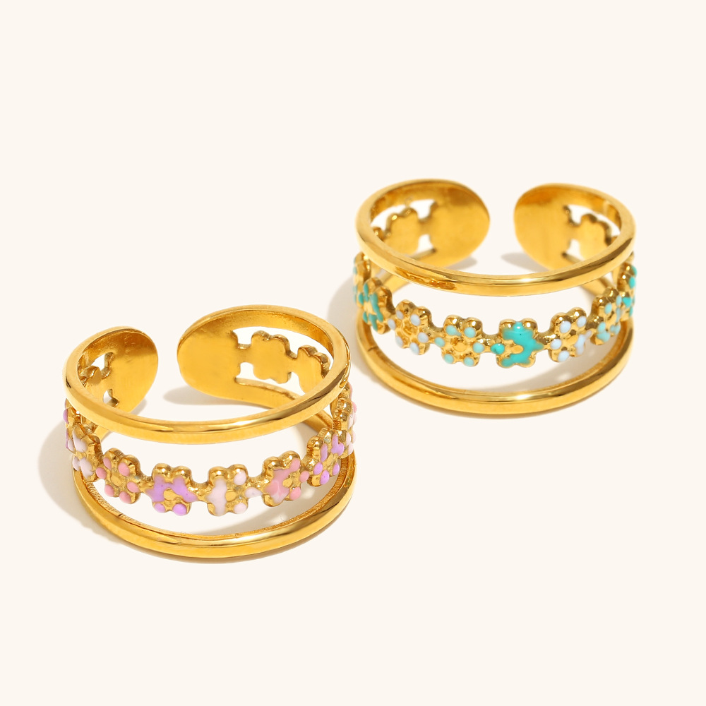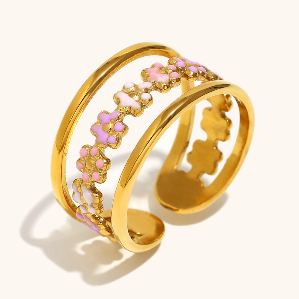 Émail Bague en Acier inoxydable , Acier inoxydable 304, Placage de couleur d'or, Réglable & pour femme & émail, plus de couleurs à choisir, Vendu par PC