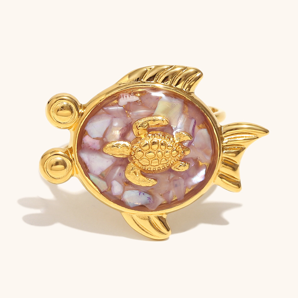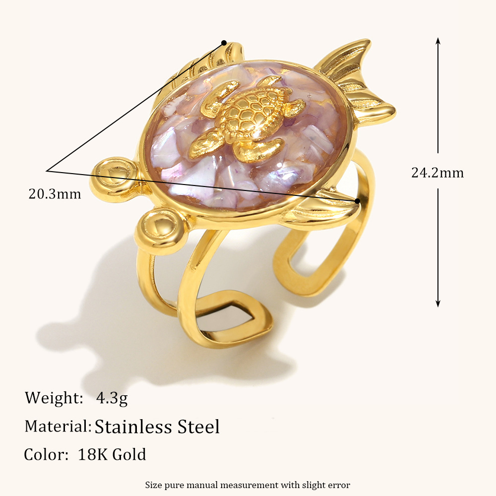 Émail Bague en Acier inoxydable , Acier inoxydable 304, avec coquille, Placage de couleur d'or, bijoux de mode & émail, plus de couleurs à choisir, Vendu par PC