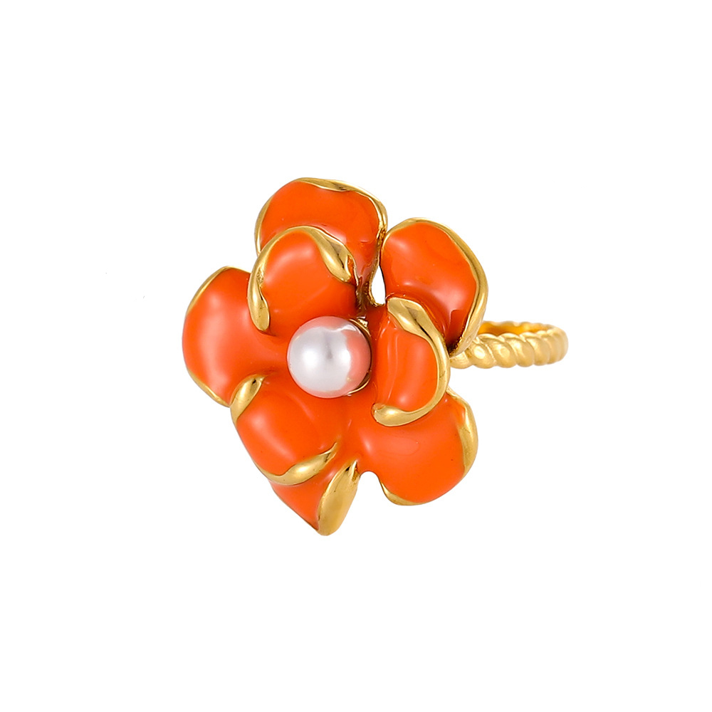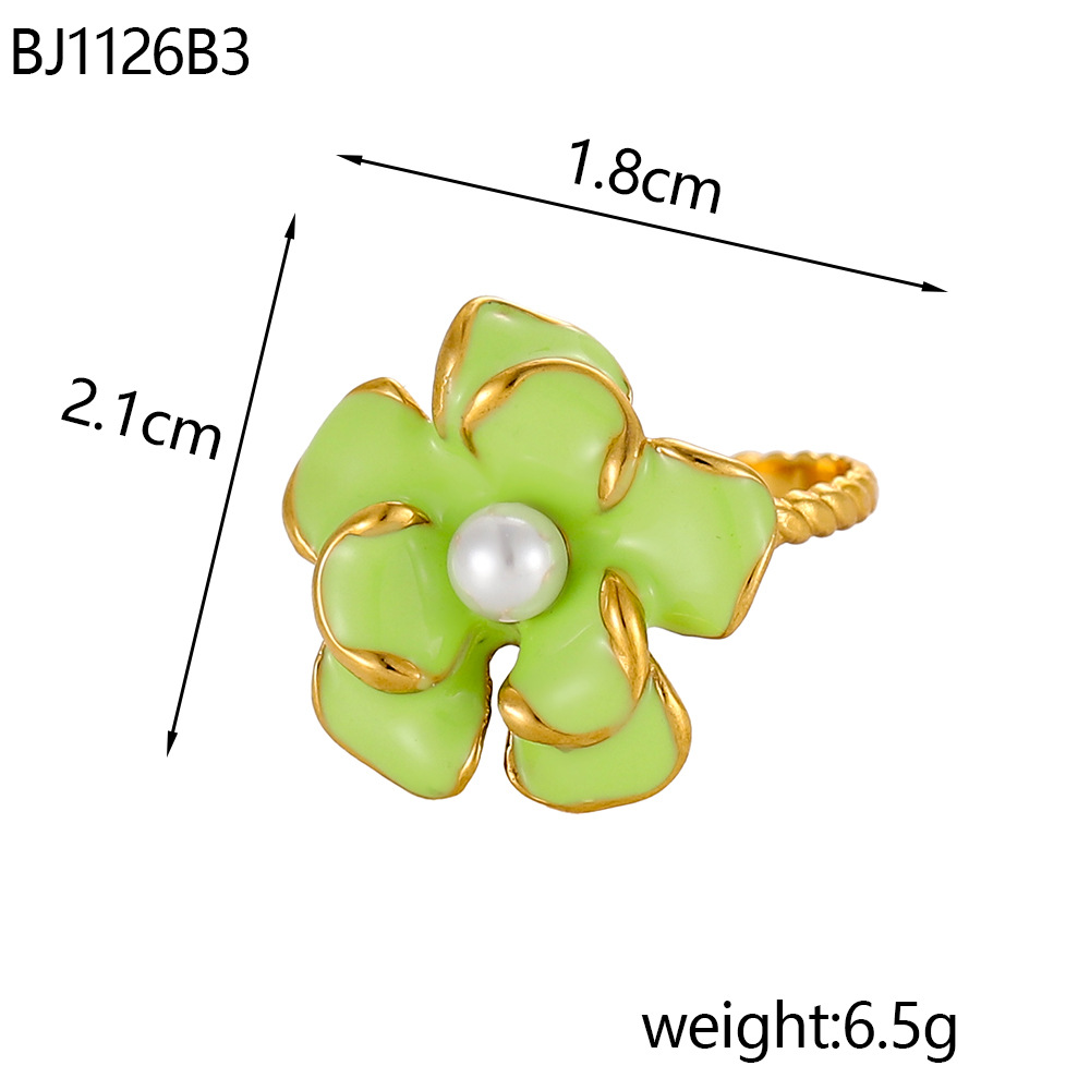 Émail Bague en Acier inoxydable , Acier inoxydable 304, avec perle de plastique, Placage de couleur d'or, bijoux de mode & pavé de micro zircon & émail, plus de couleurs à choisir, Vendu par PC