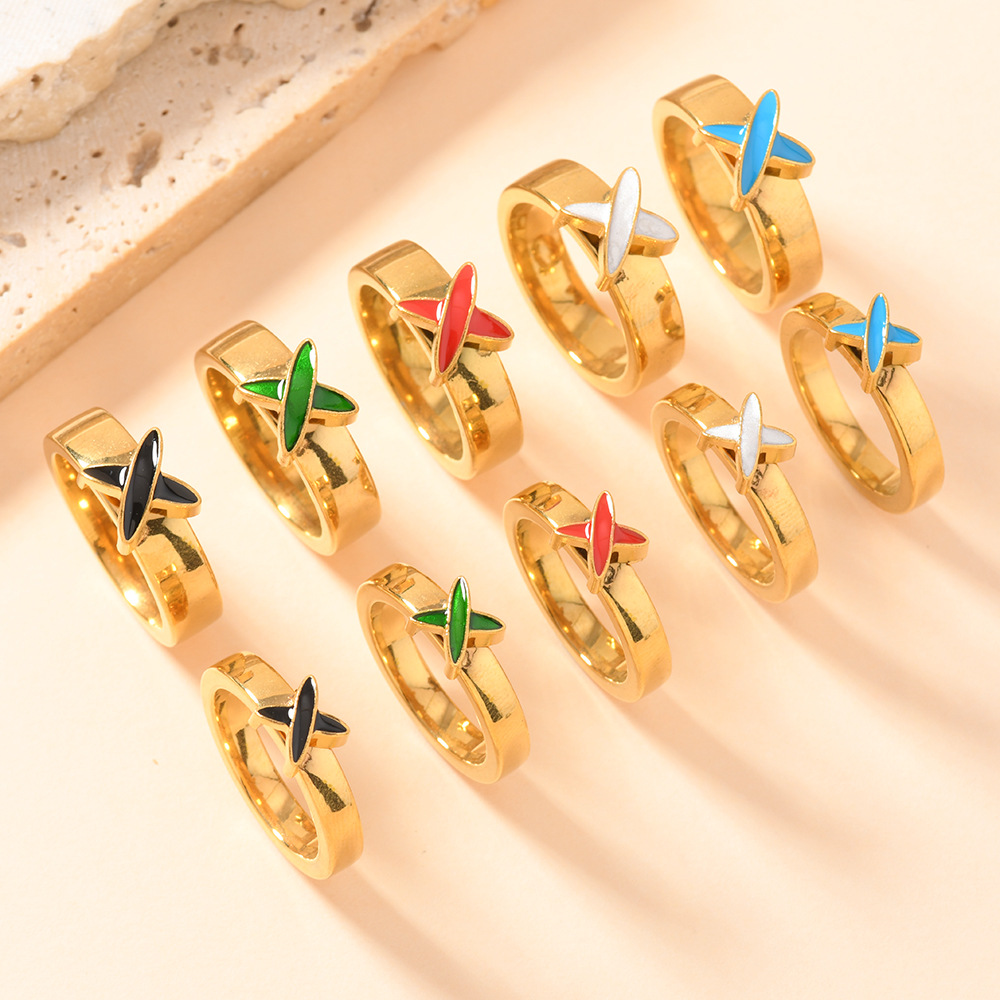 Émail Bague en Acier inoxydable , Acier inoxydable 304, Plaqué or 18K, normes différentes pour le choix & pour femme & émail, plus de couleurs à choisir, Vendu par PC