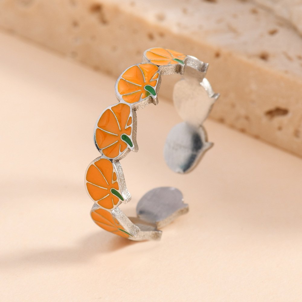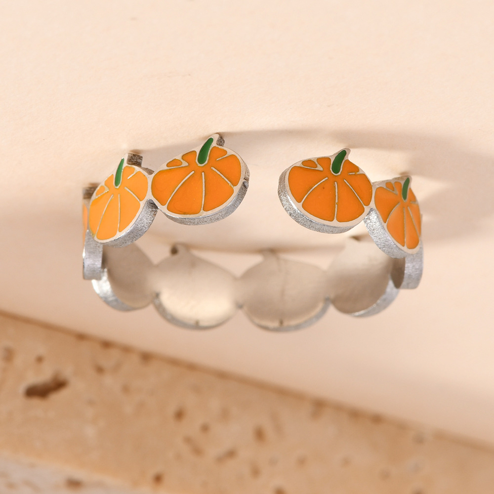 Émail Bague en Acier inoxydable , Acier inoxydable 304, Citrouille, Placage, Halloween Design & pour femme & émail, Taille:7, Vendu par PC