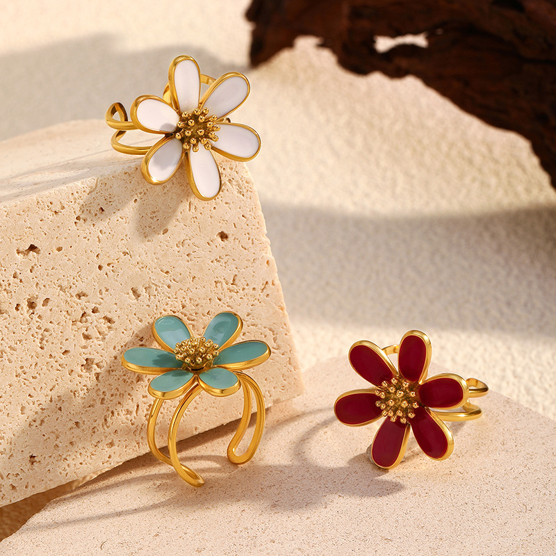 Émail Bague en Acier inoxydable , Acier inoxydable 304, Placage de couleur d'or, pour femme & émail & creux, plus de couleurs à choisir, Vendu par PC