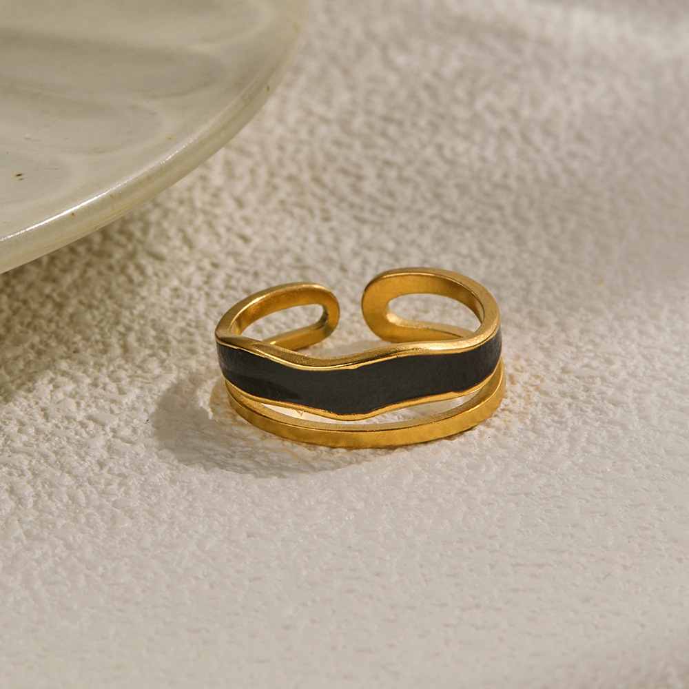 Émail Bague en Acier inoxydable , Acier inoxydable 304, Placage, bijoux de mode & pour femme & émail & creux, doré, Vendu par PC