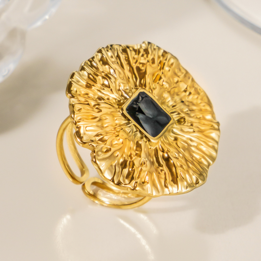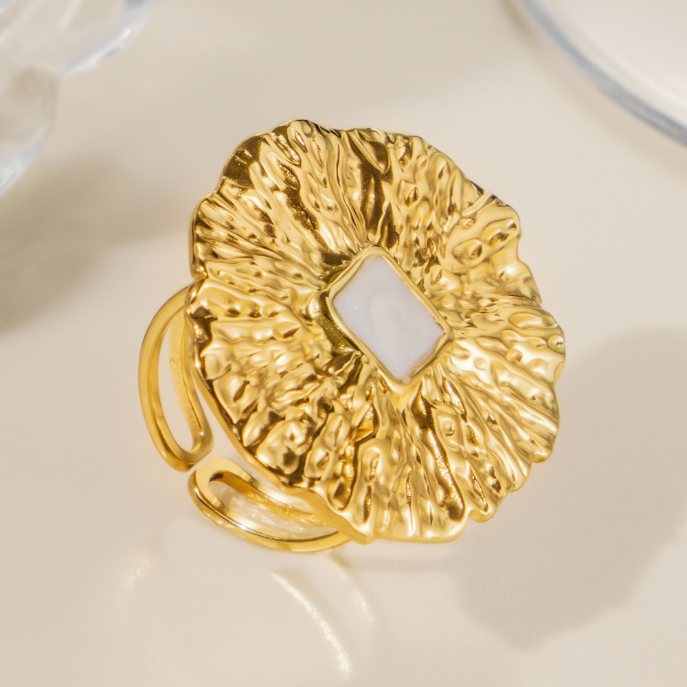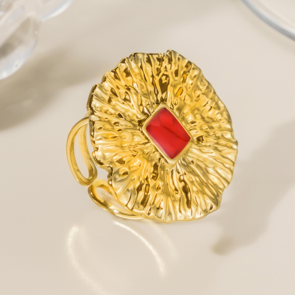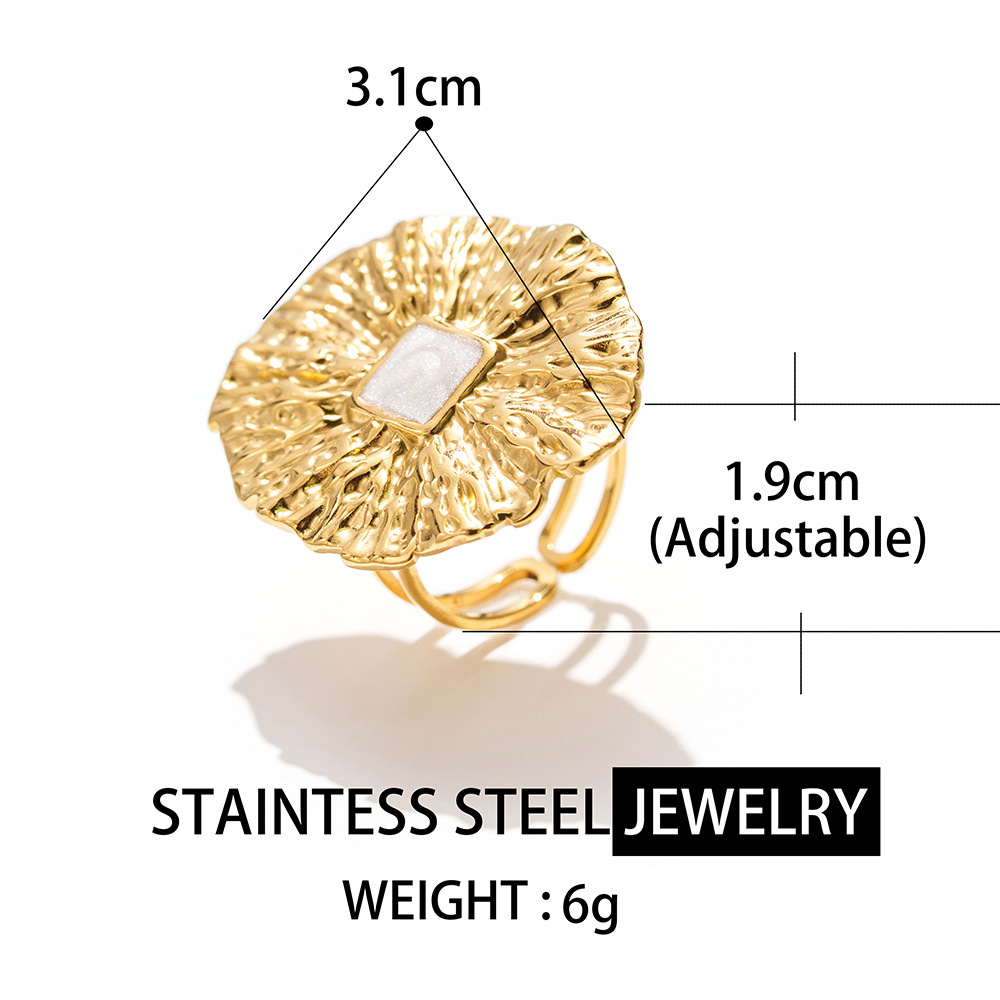 Émail Bague en Acier inoxydable , Acier inoxydable 304, Placage sous vide, pour femme & émail & creux, doré, Vendu par PC