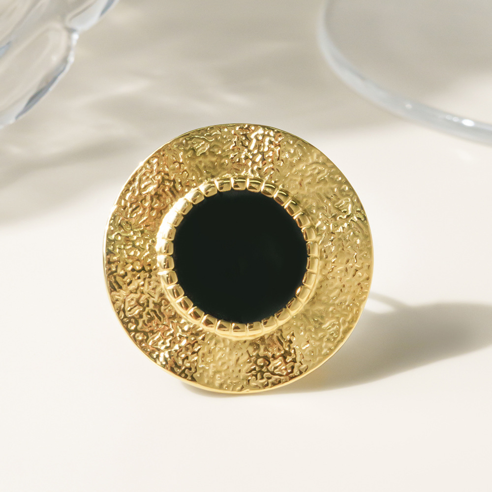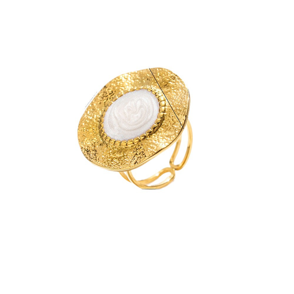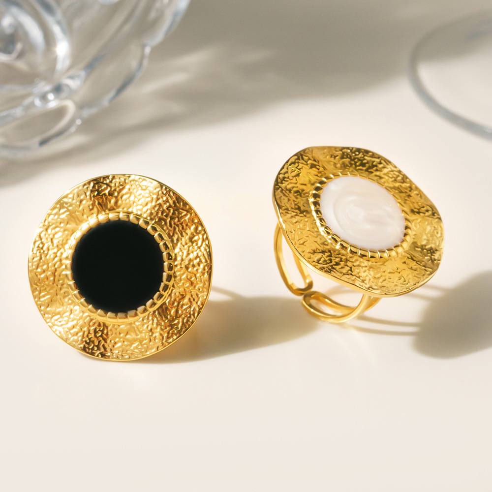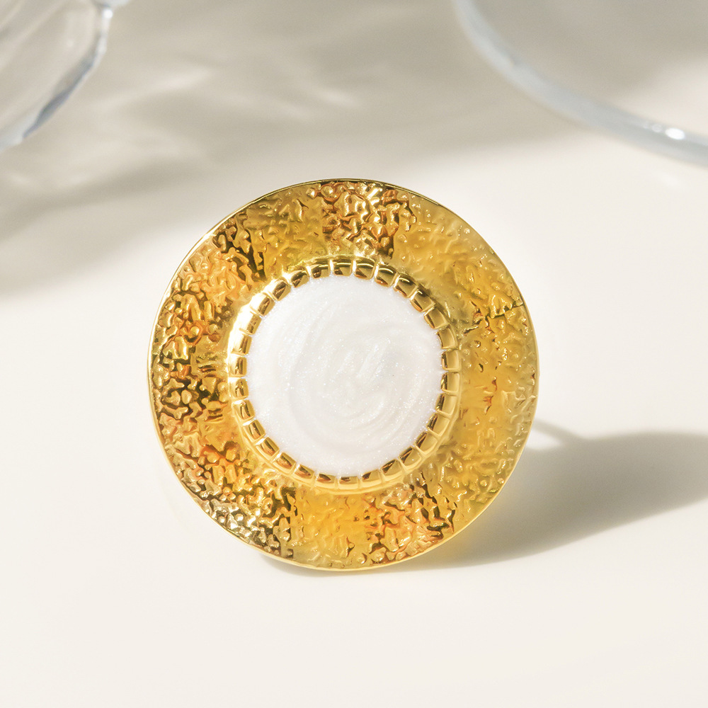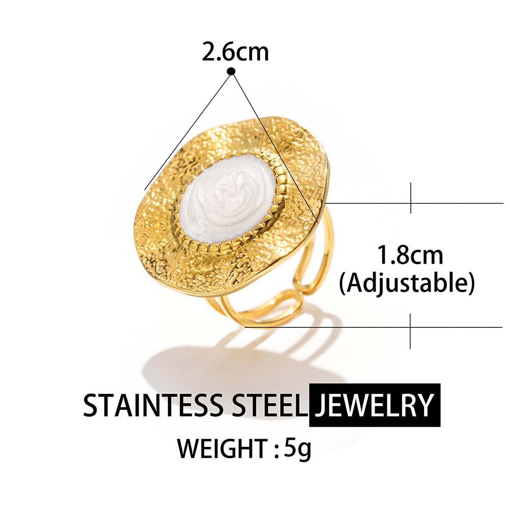 Émail Bague en Acier inoxydable , Acier inoxydable 304, Rond, Placage sous vide, pour femme & émail & creux, doré, Vendu par PC