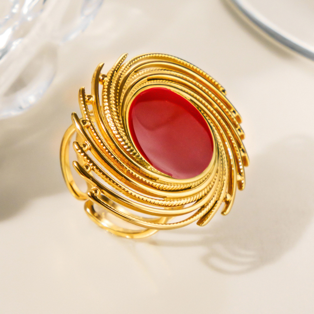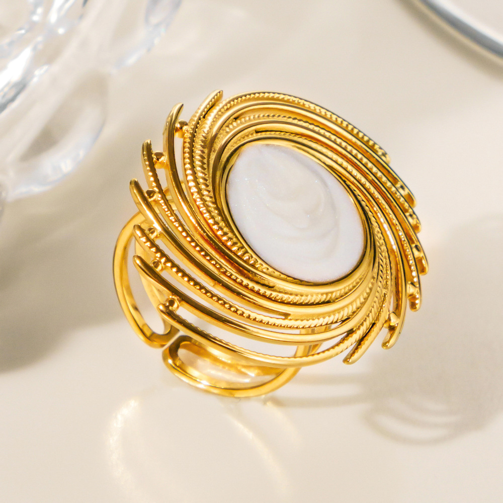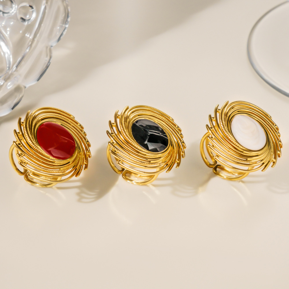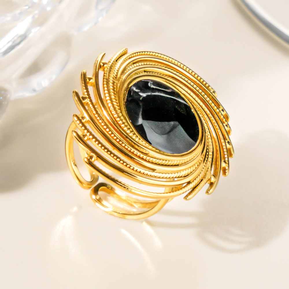 Émail Bague en Acier inoxydable , Acier inoxydable 304, Placage sous vide, pour femme & émail & creux, doré, Vendu par PC
