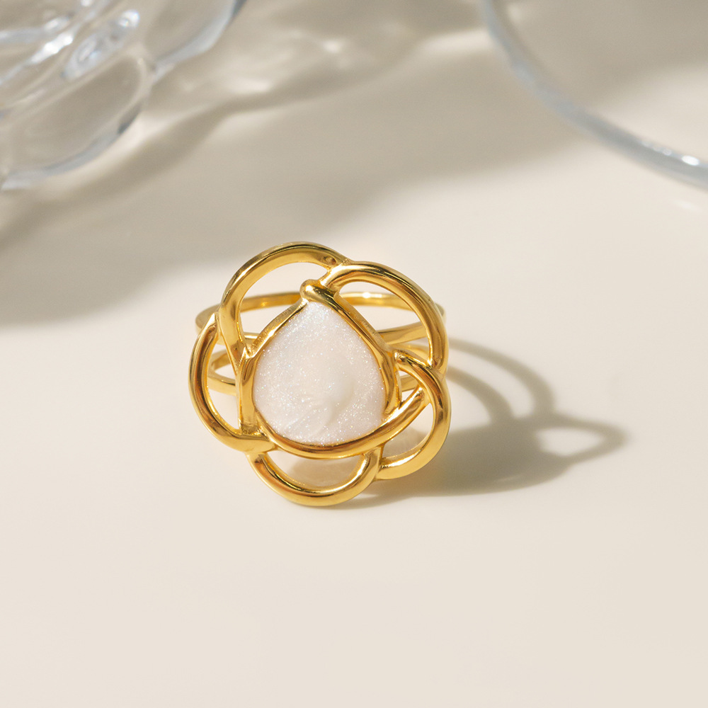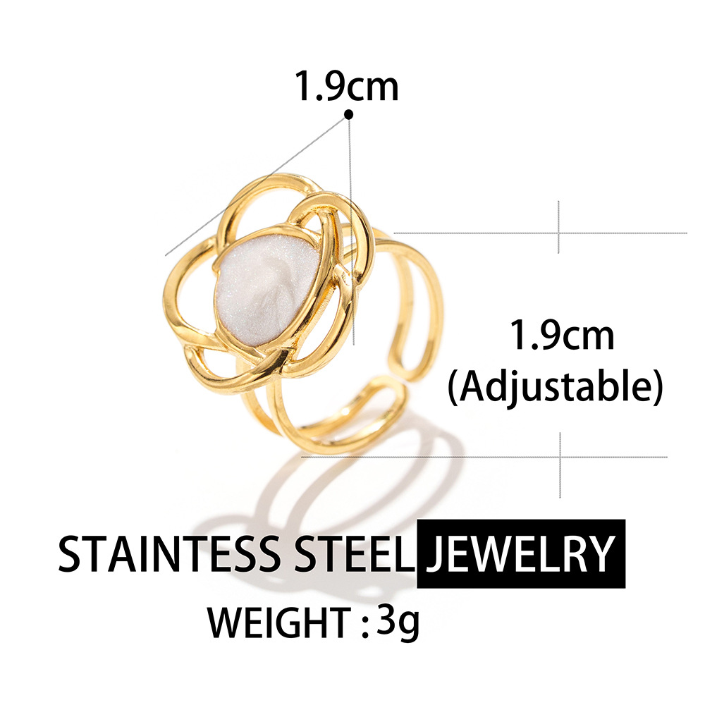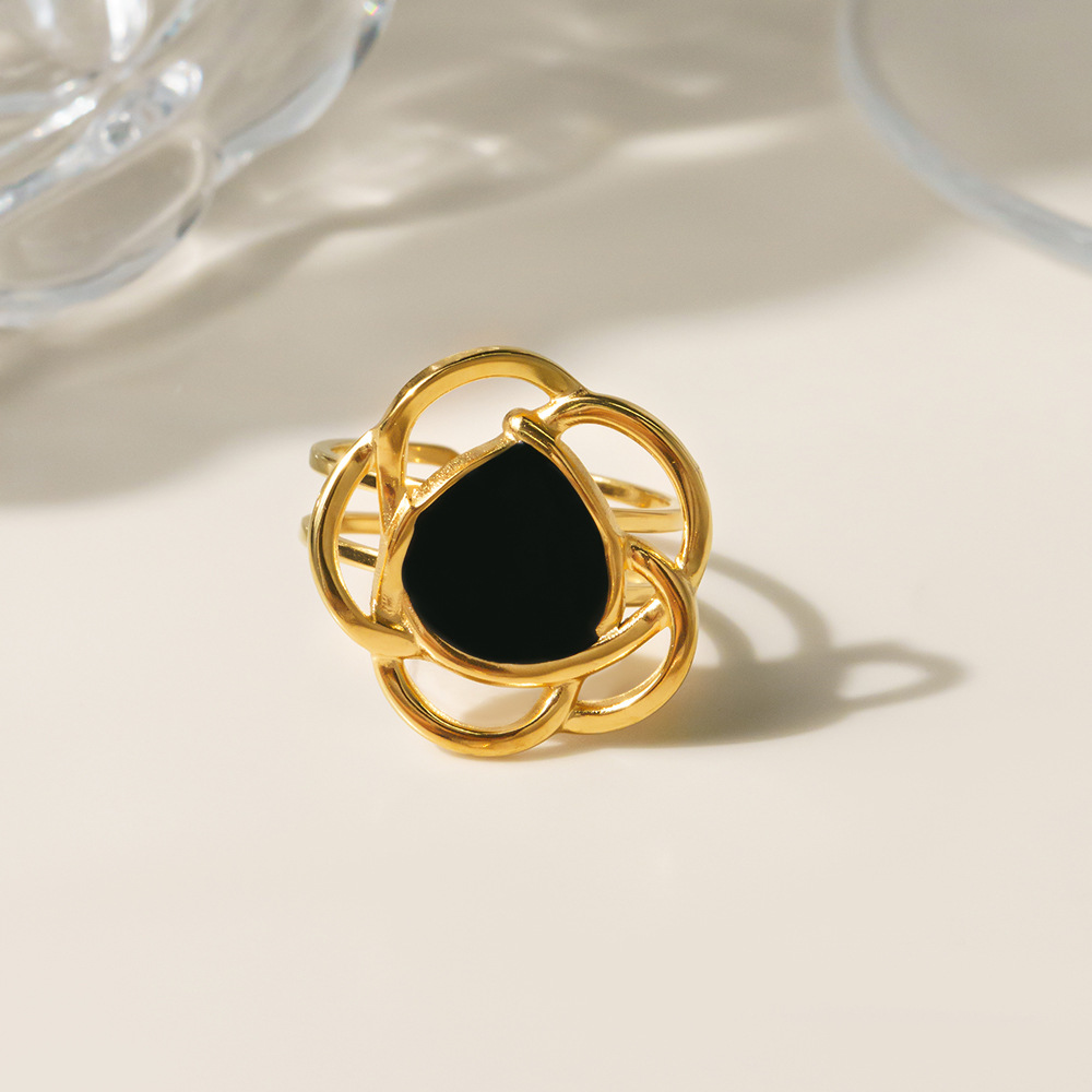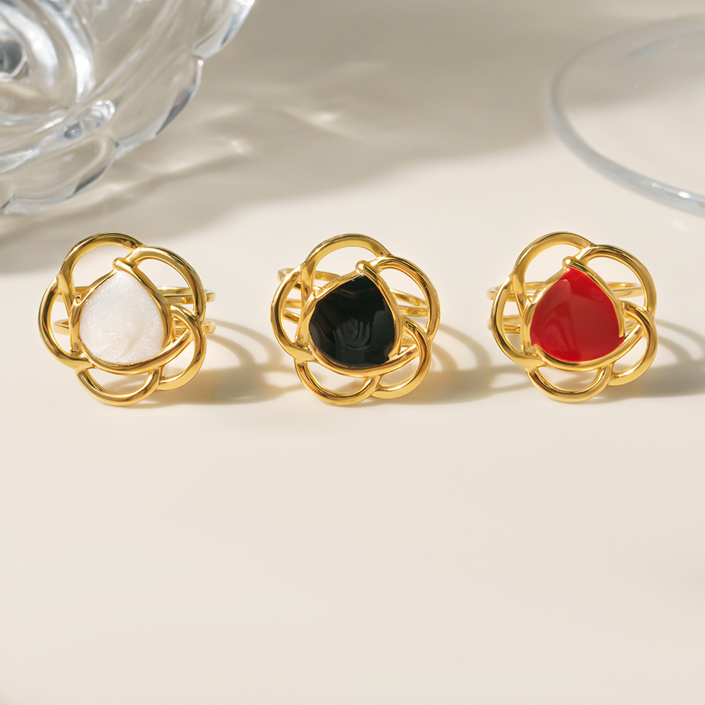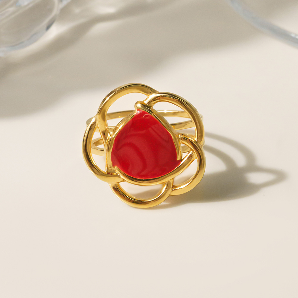 Émail Bague en Acier inoxydable , Acier inoxydable 304, fleur, Placage sous vide, pour femme & émail & creux, doré, Vendu par PC