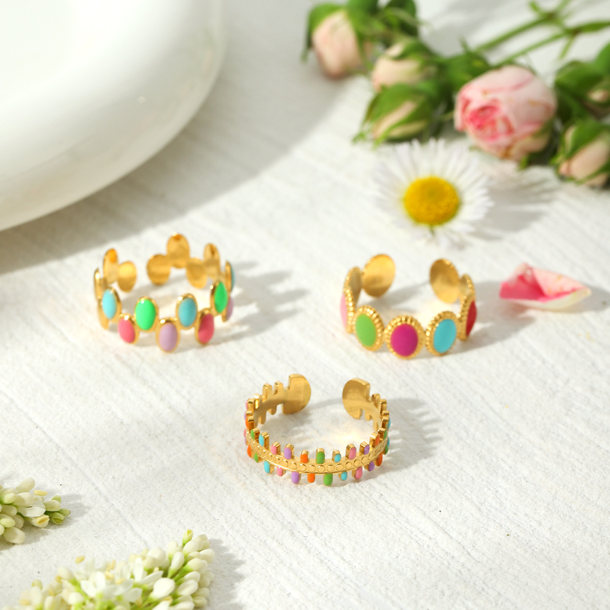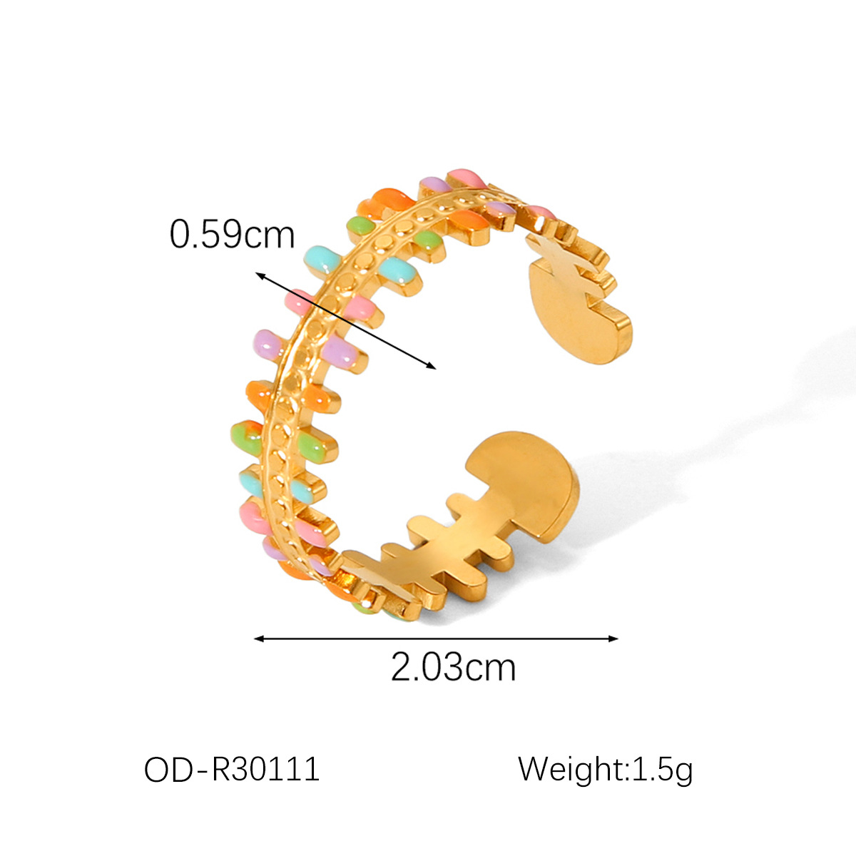 Émail Bague en Acier inoxydable , Acier inoxydable 304, Placage de couleur d'or, styles différents pour le choix & pour femme & émail, Vendu par PC