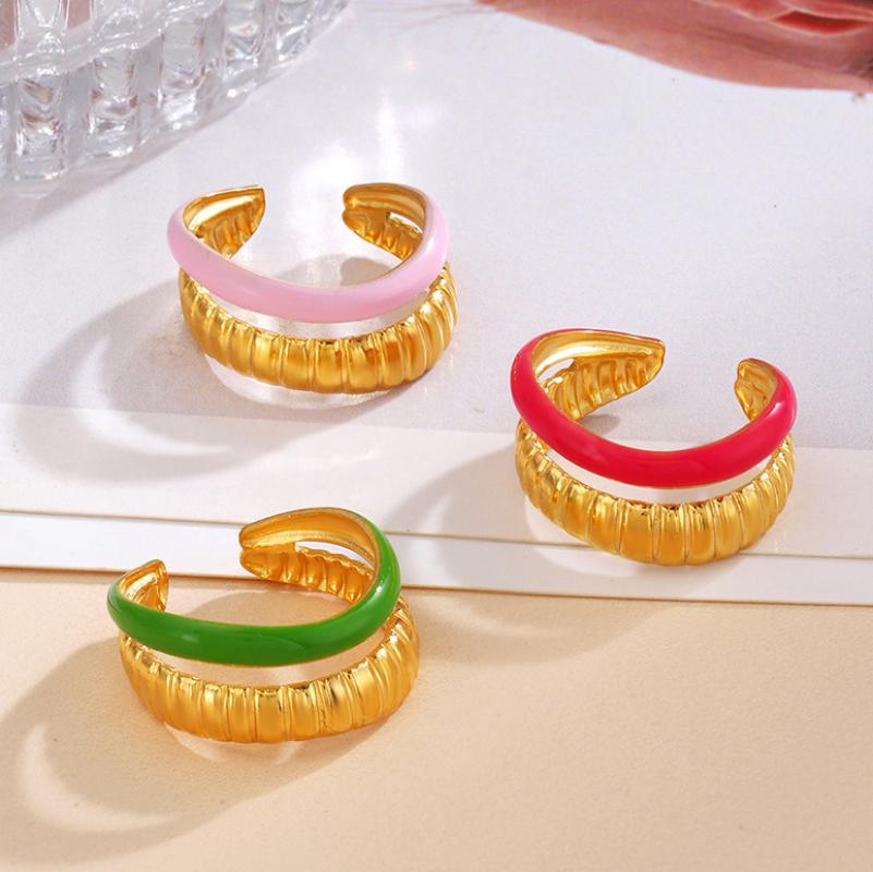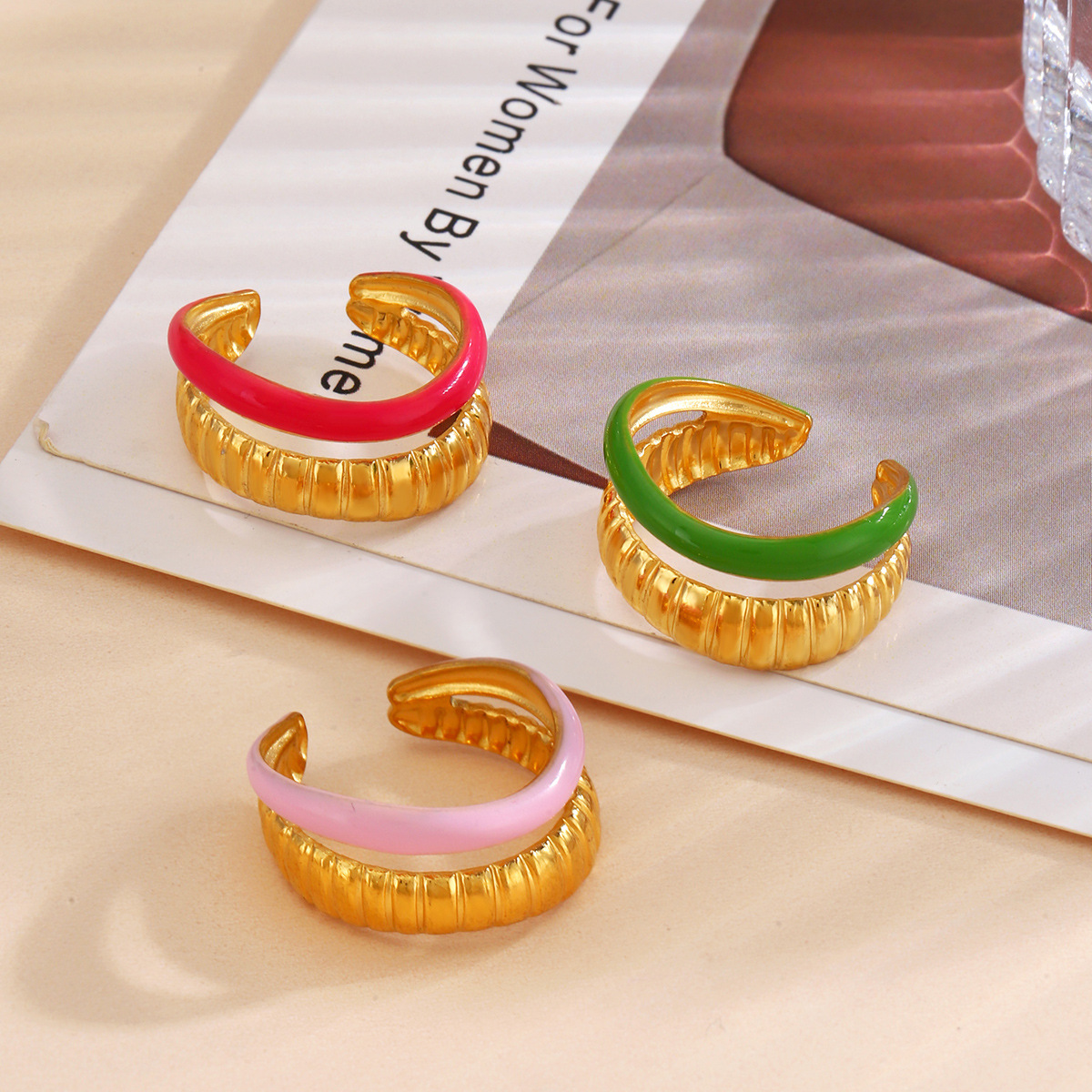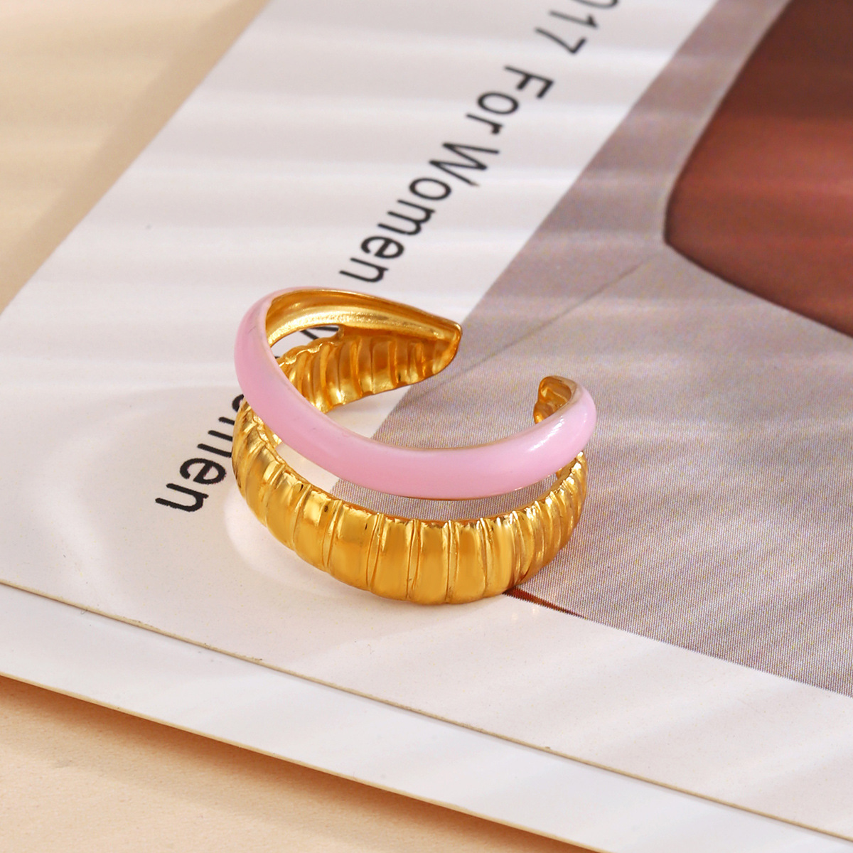 Émail Bague en Acier inoxydable , Acier inoxydable 304, Placage de couleur d'or, pour femme & émail & creux, plus de couleurs à choisir, Vendu par PC