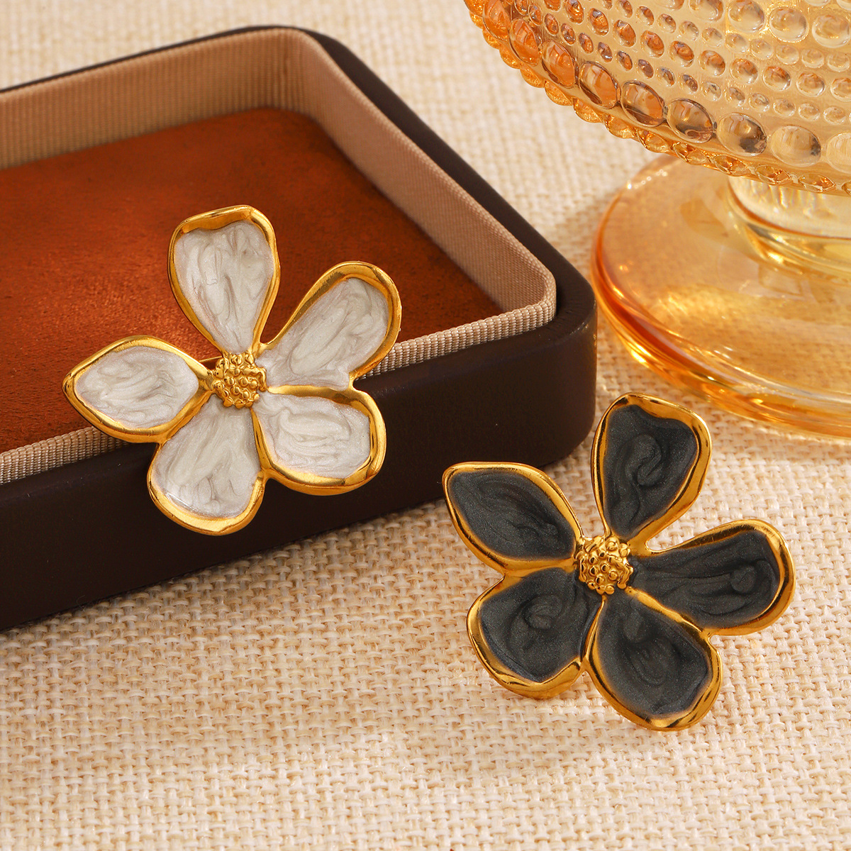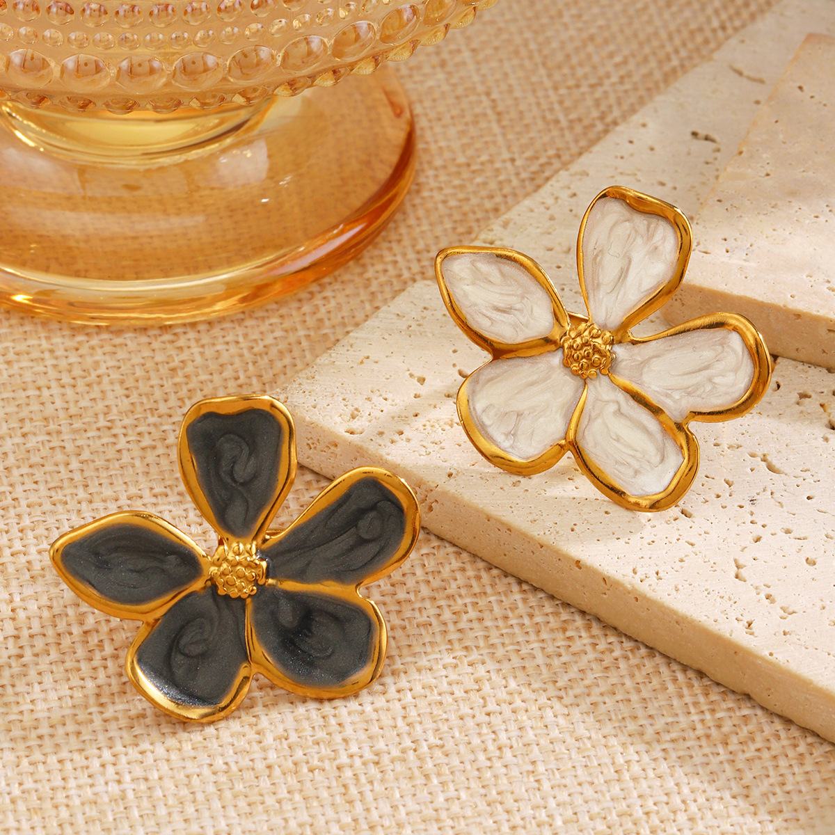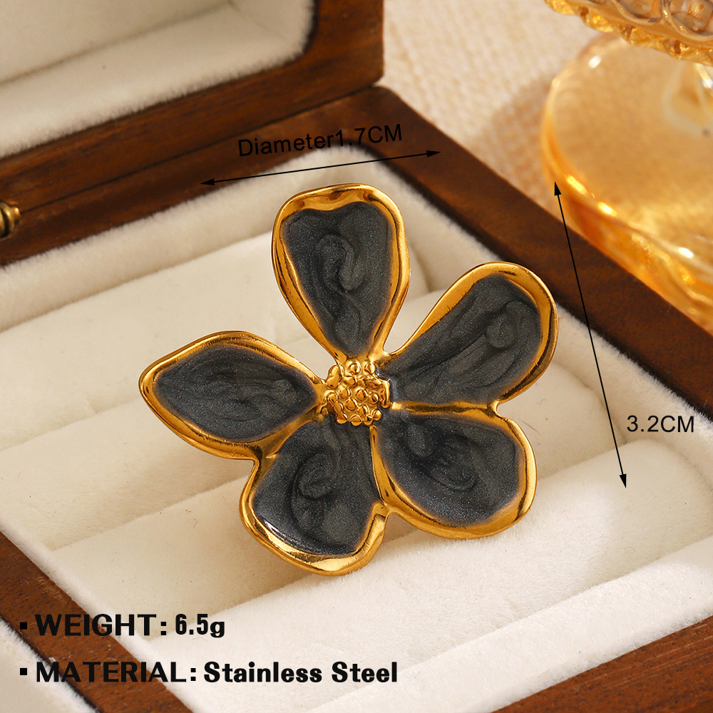 Émail Bague en Acier inoxydable , Acier inoxydable 304, fleur, Placage de couleur d'or, bijoux de mode & pour femme & émail, plus de couleurs à choisir, Vendu par PC