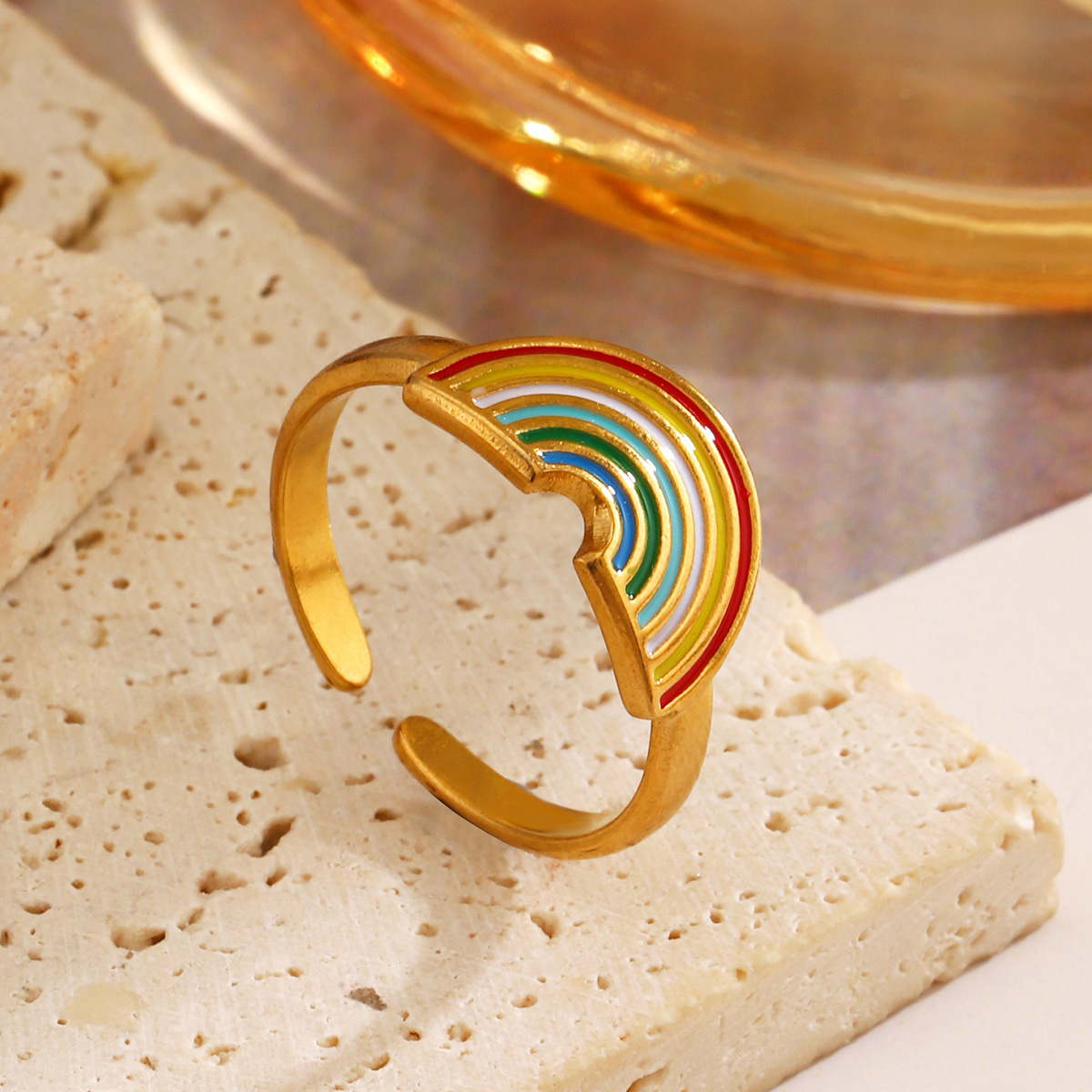 Émail Bague en Acier inoxydable , Acier inoxydable 304, Plaqué or 18K, bijoux de mode & pour femme & émail, Vendu par PC
