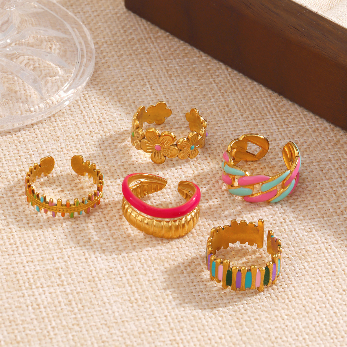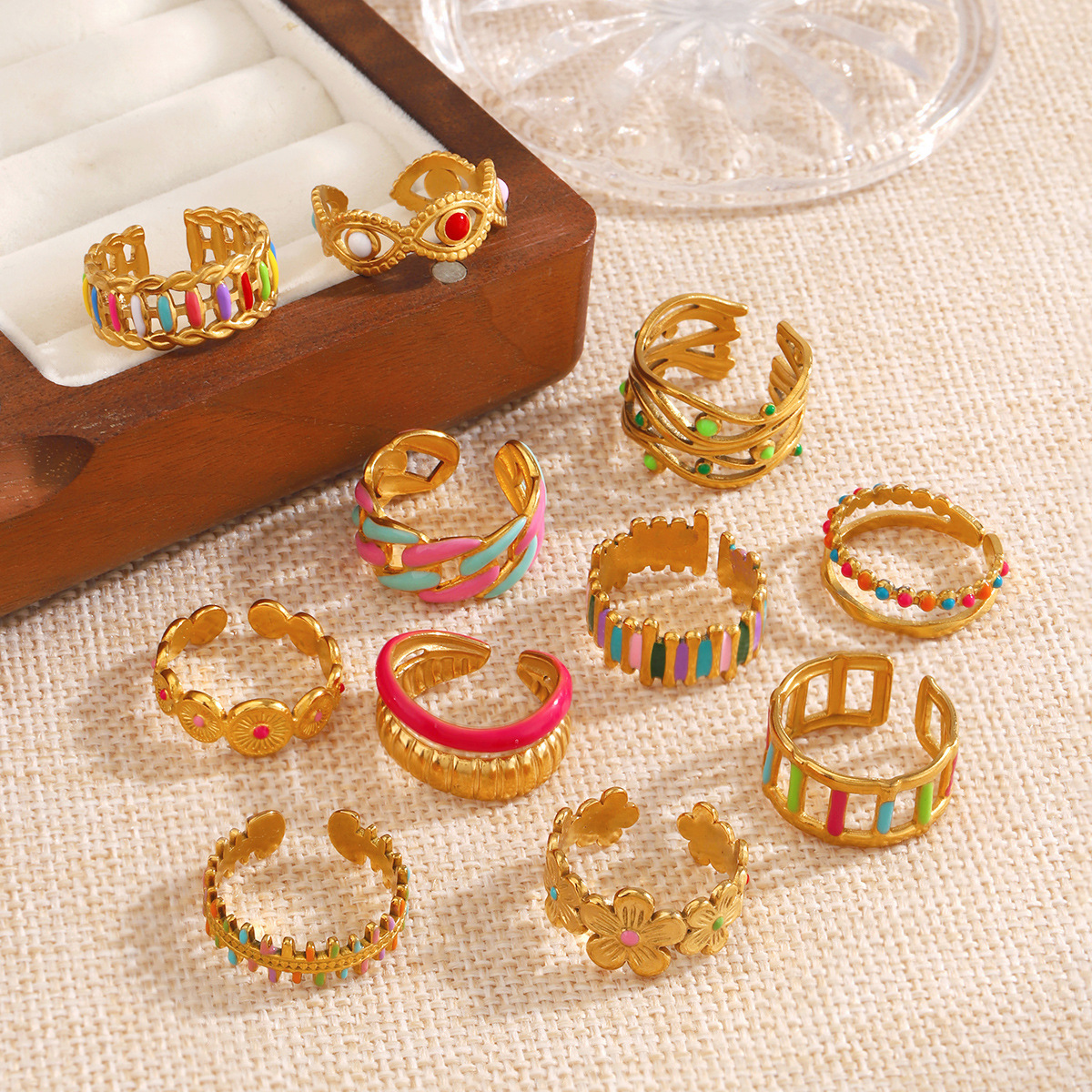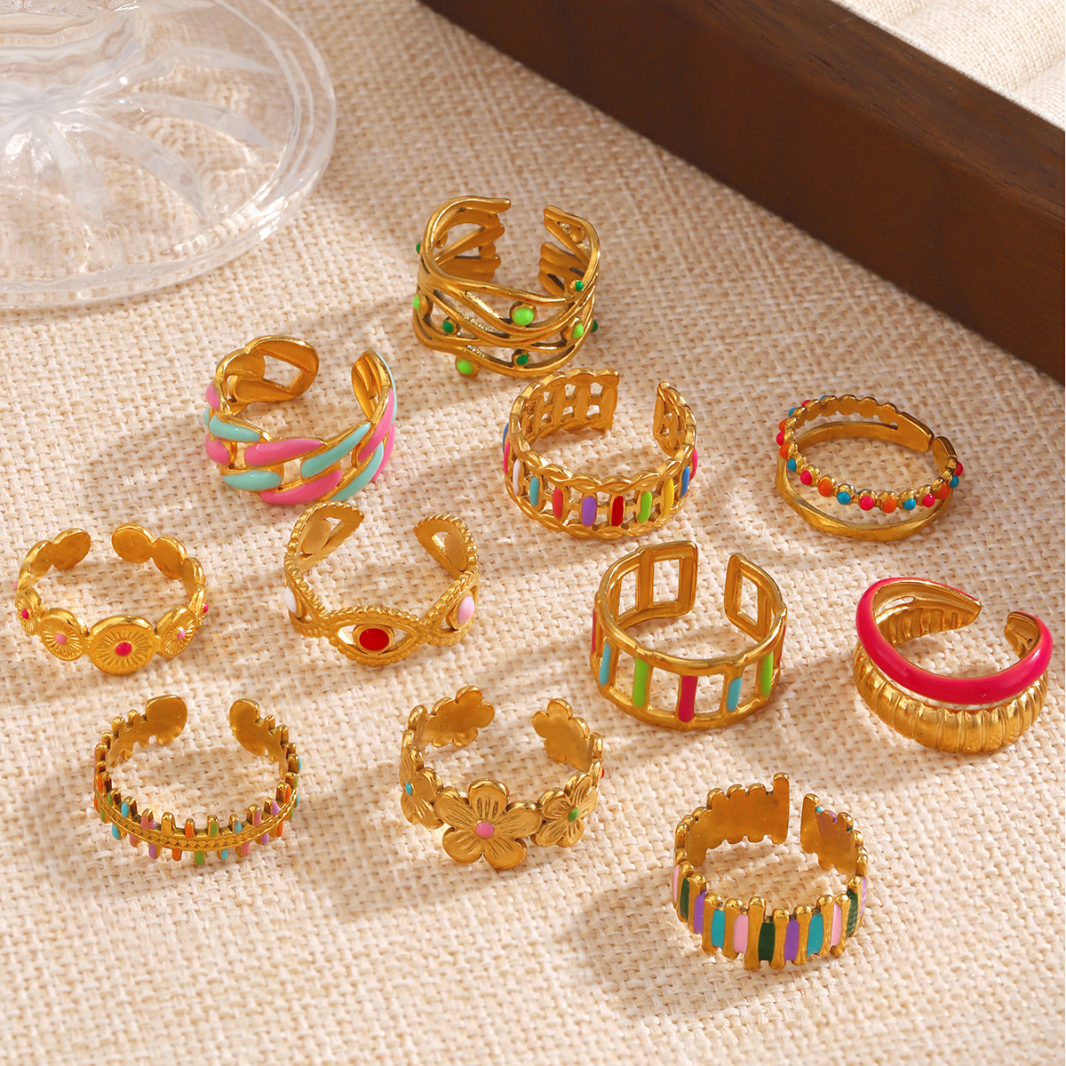 Émail Bague en Acier inoxydable , Acier inoxydable 304, Placage, styles différents pour le choix & pour femme & émail & creux, doré, Vendu par PC