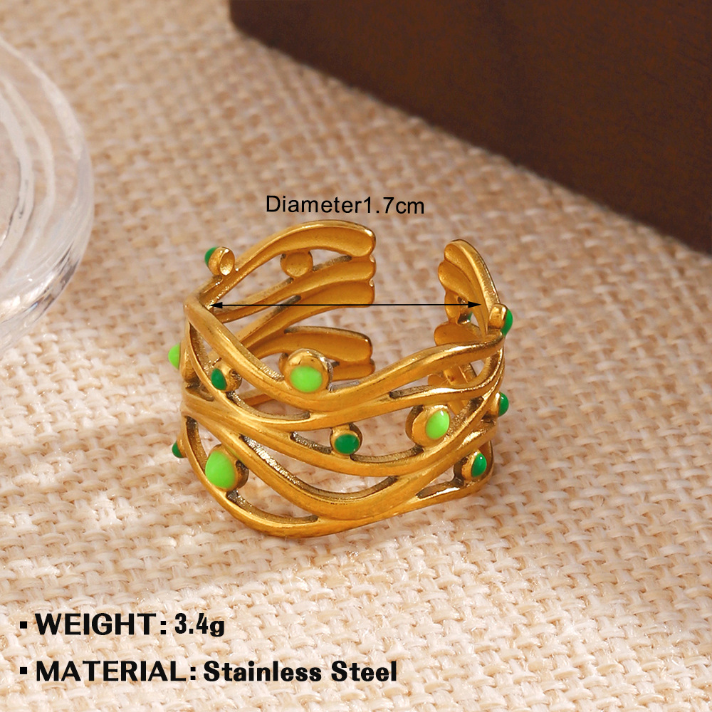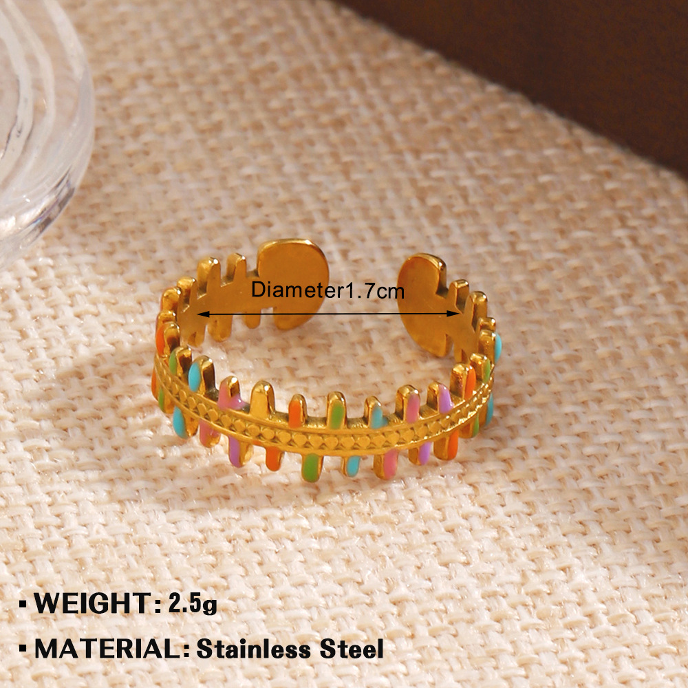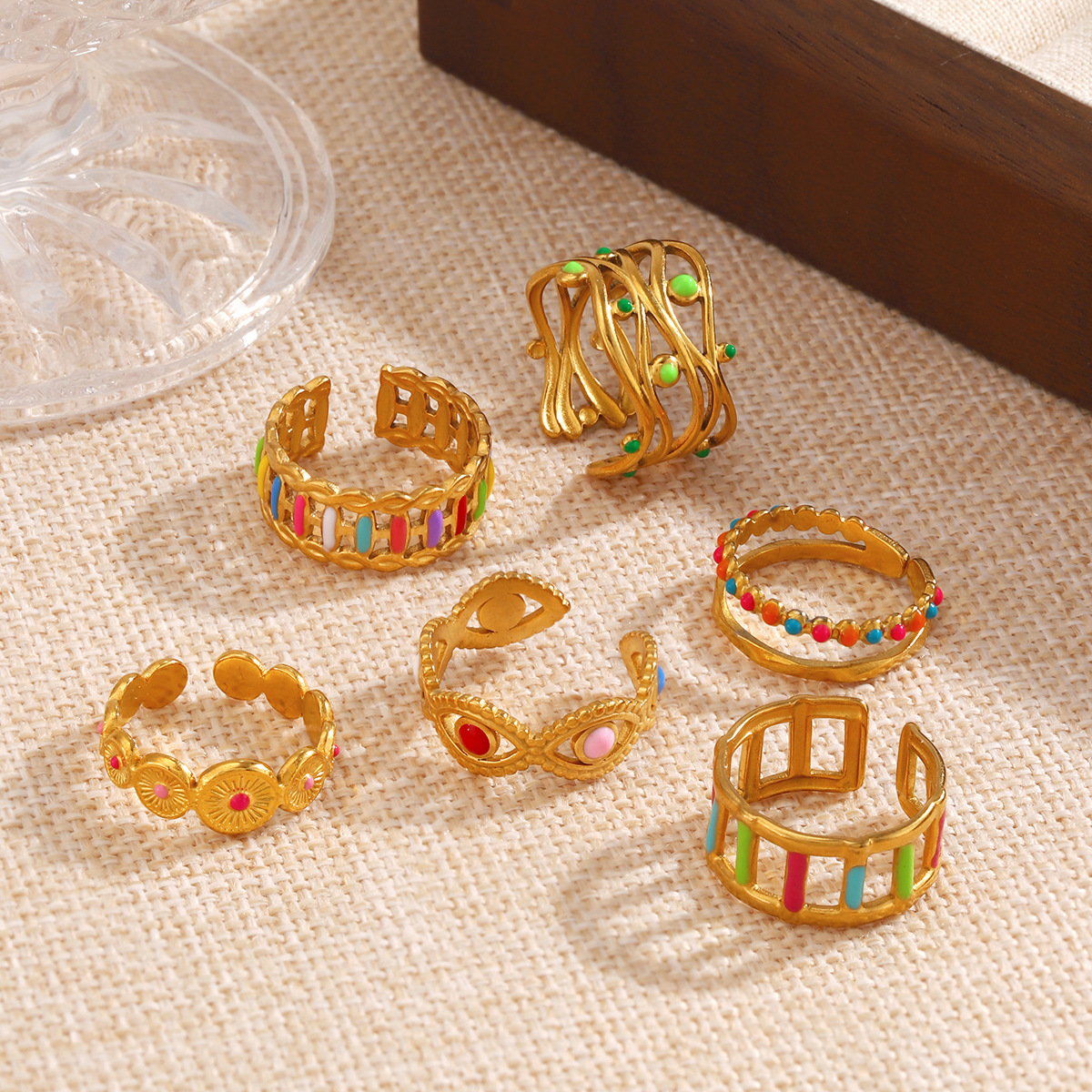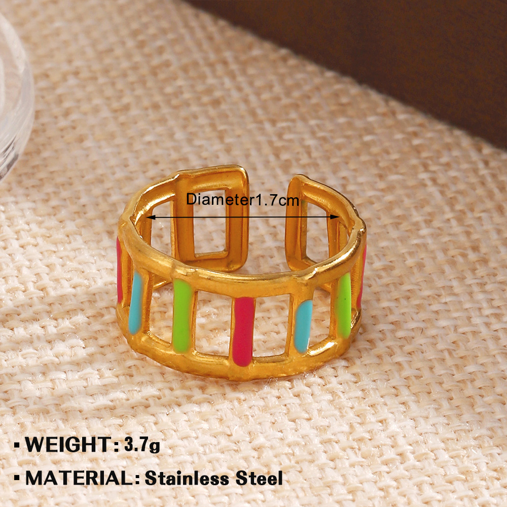 Émail Bague en Acier inoxydable , Acier inoxydable 304, Placage, styles différents pour le choix & pour femme & émail & creux, doré, Vendu par PC