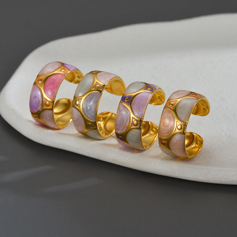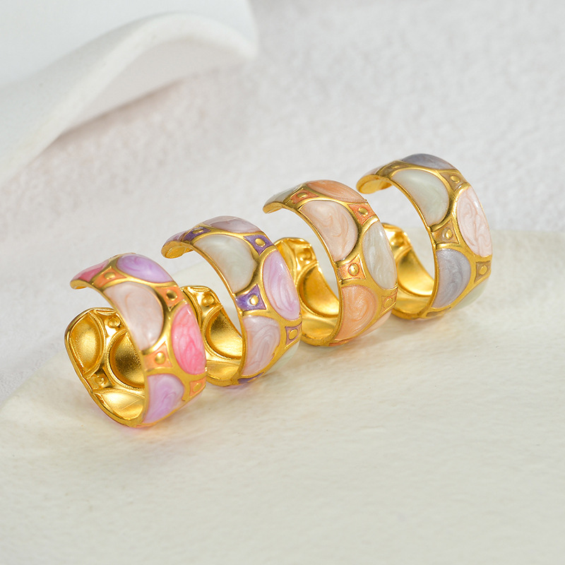 Émail Bague en Acier inoxydable , Acier inoxydable 304, Placage de couleur d'or, bijoux de mode & pour femme & émail, plus de couleurs à choisir, Vendu par PC