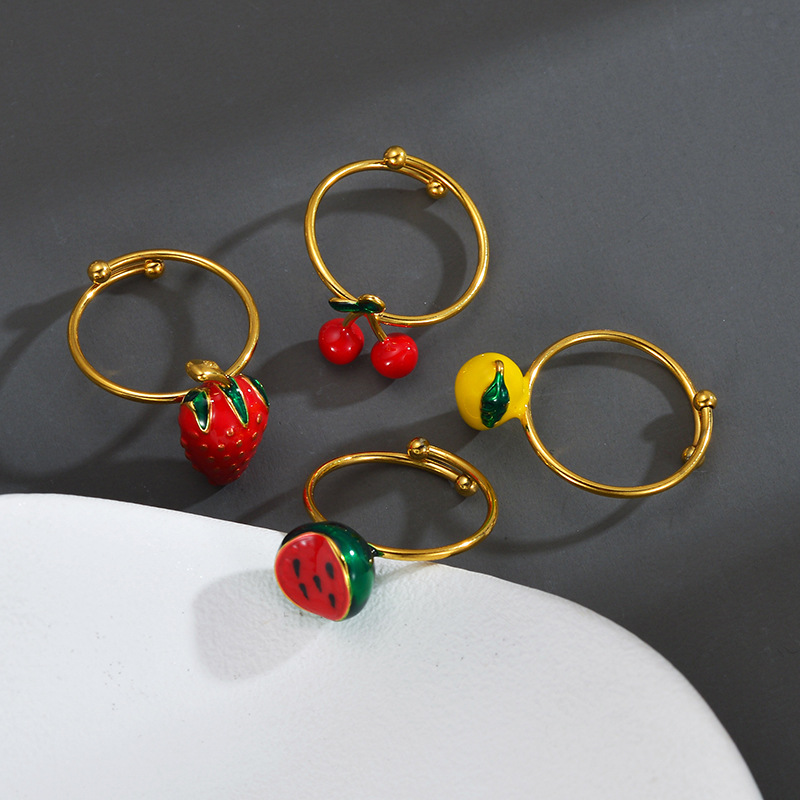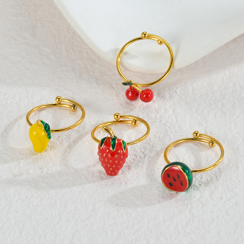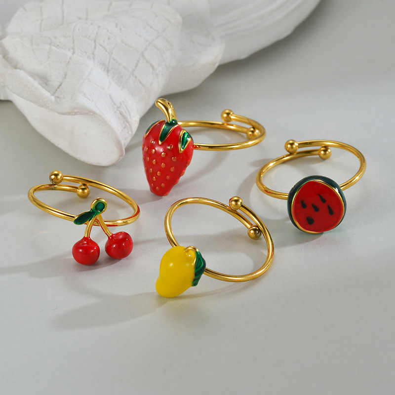 Émail Bague en Acier inoxydable , Acier inoxydable 304, Placage, styles différents pour le choix & pour femme & émail, doré, Vendu par PC