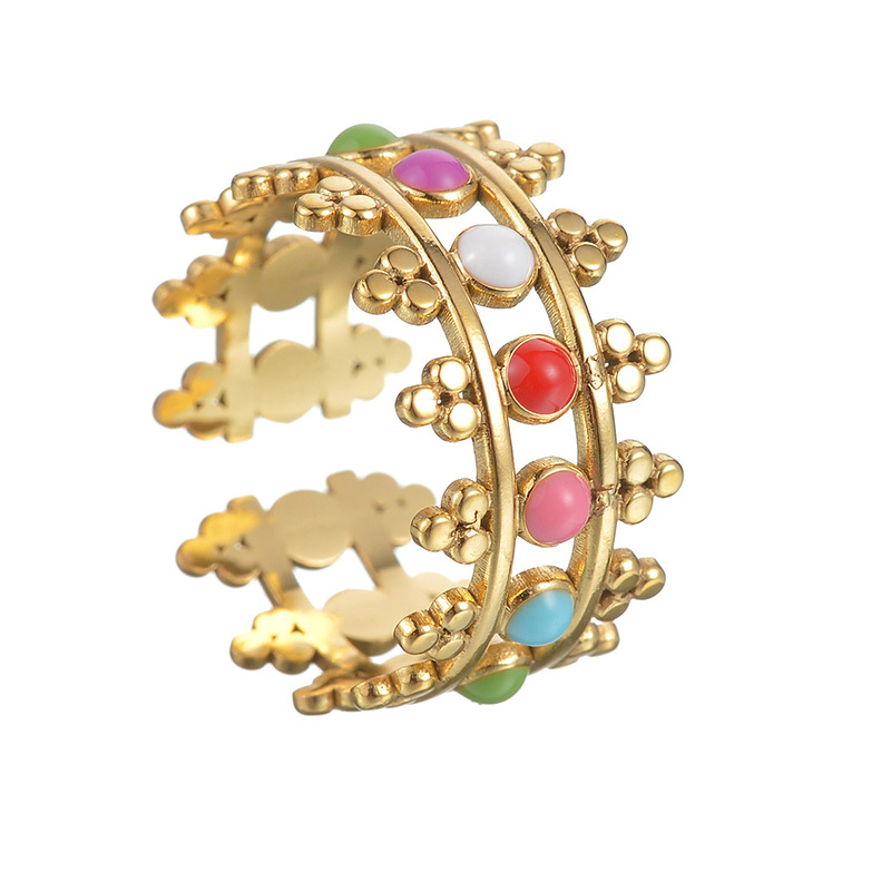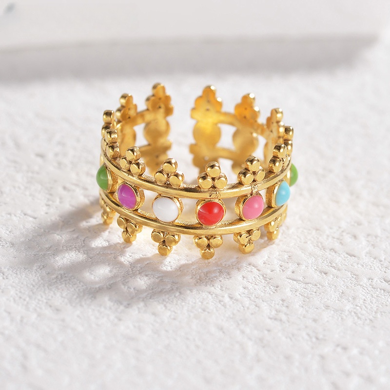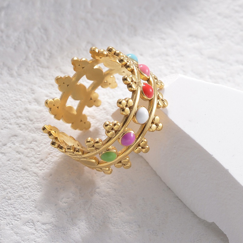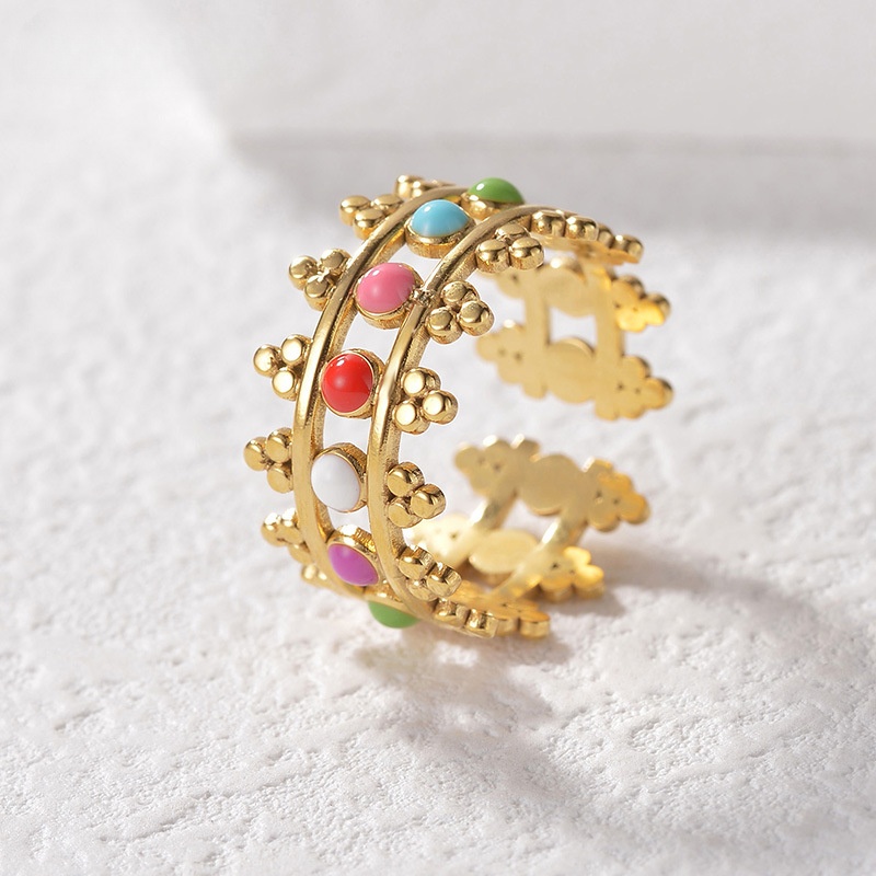 Émail Bague en Acier inoxydable , Acier inoxydable 304, Placage, pour femme & émail & creux, doré, Vendu par PC