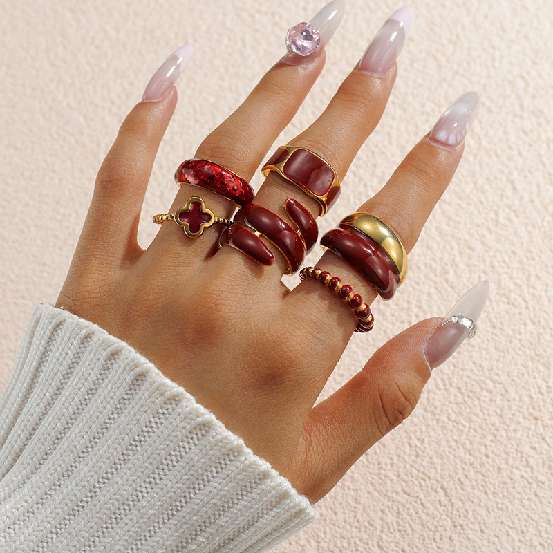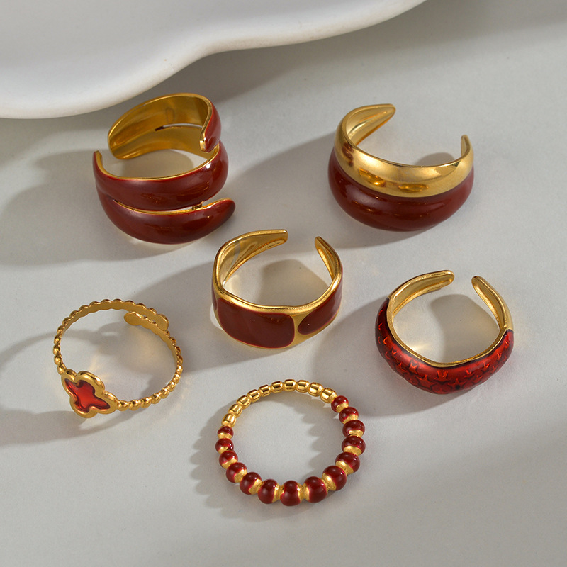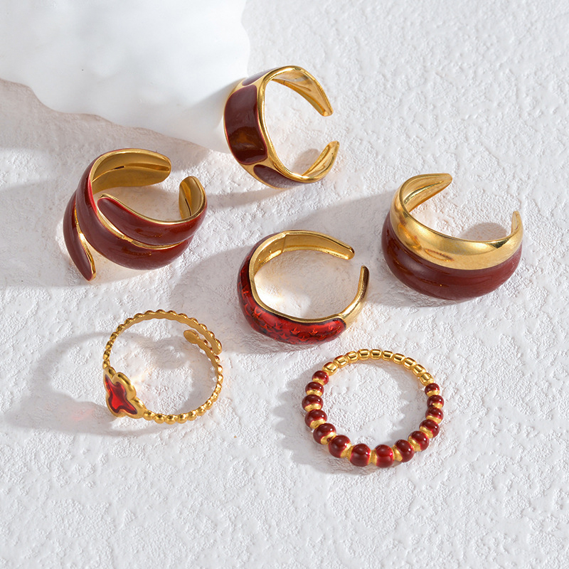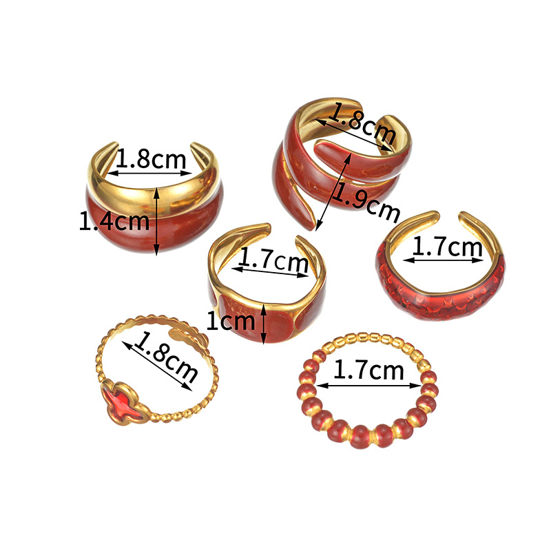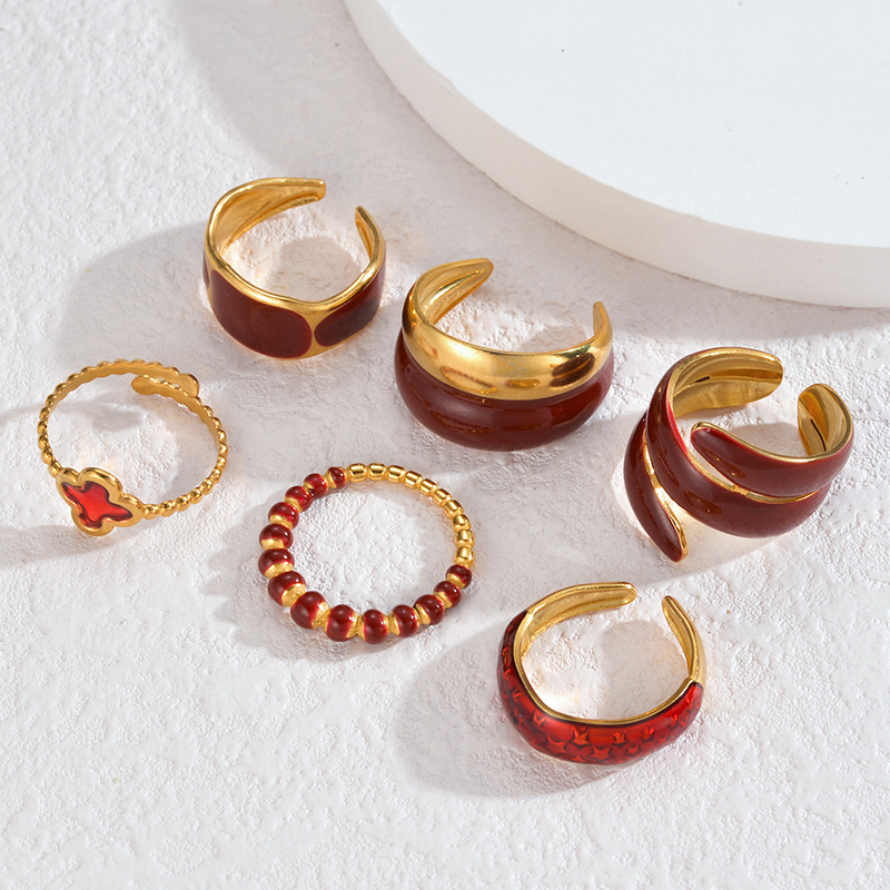 Émail Bague en Acier inoxydable , Acier inoxydable 304, Placage de couleur d'or, styles différents pour le choix & pour femme & émail, rouge, Vendu par PC