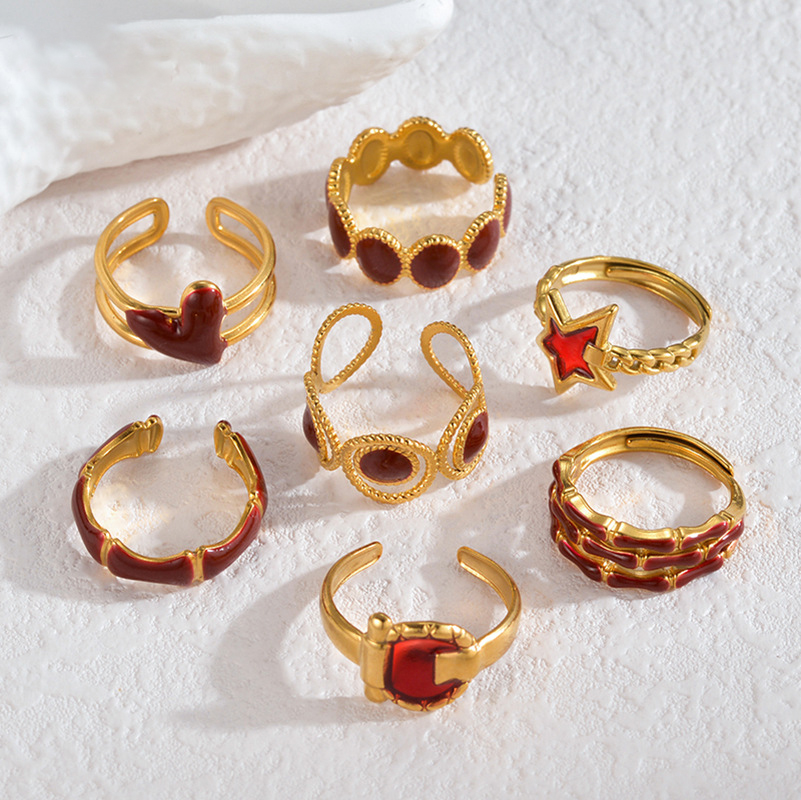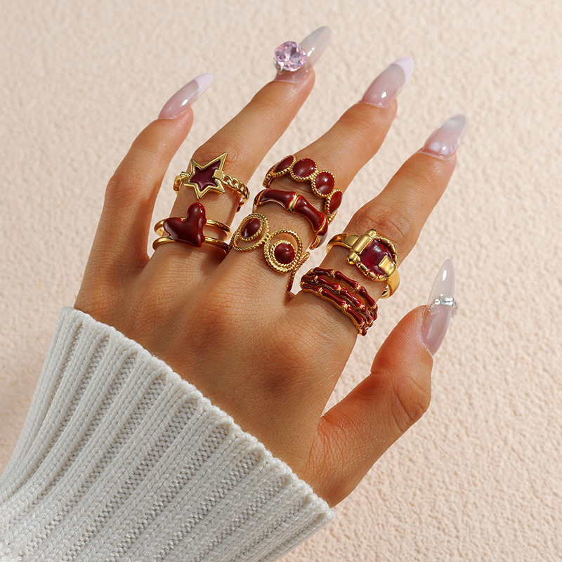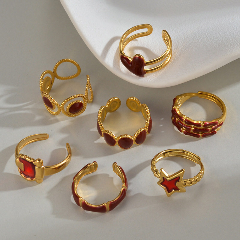 Émail Bague en Acier inoxydable , Acier inoxydable 304, Placage de couleur d'or, styles différents pour le choix & pour femme & émail, rouge, Vendu par PC