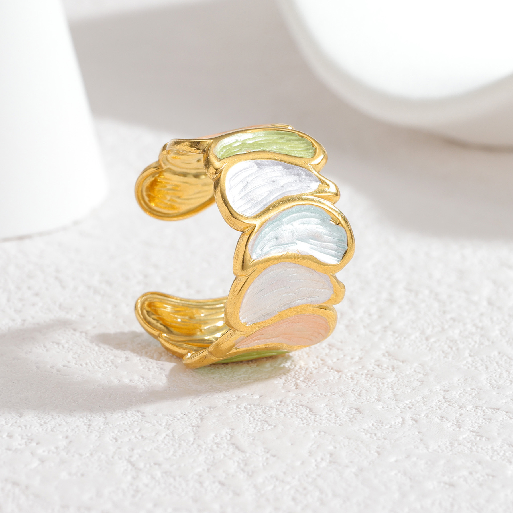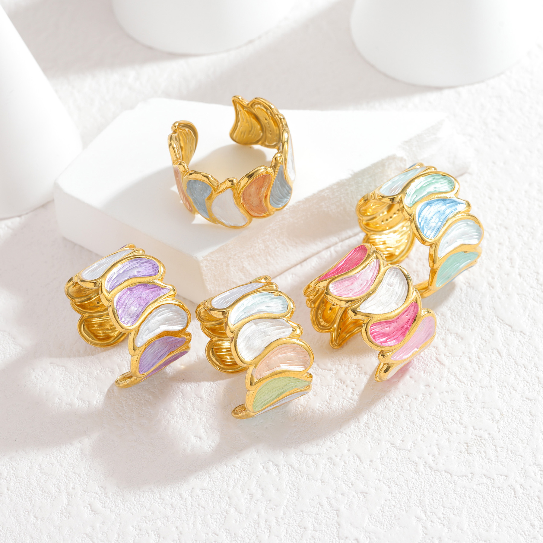 Émail Bague en Acier inoxydable , Acier inoxydable 304, Placage de couleur d'or, bijoux de mode & pour femme & émail, plus de couleurs à choisir, Vendu par PC