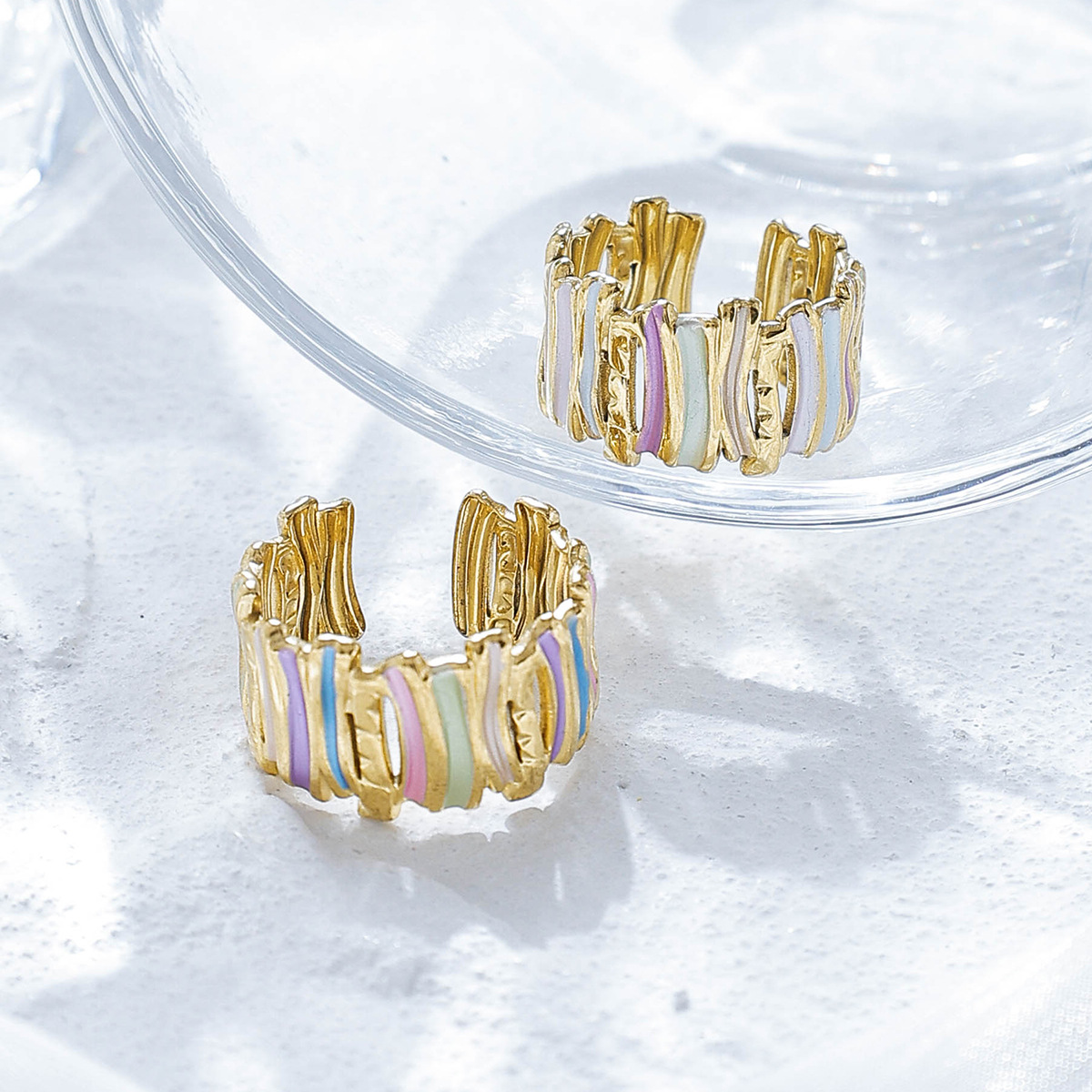 Émail Bague en Acier inoxydable , Acier inoxydable 304, Placage de couleur d'or, pour femme & émail & creux, plus de couleurs à choisir, Vendu par PC