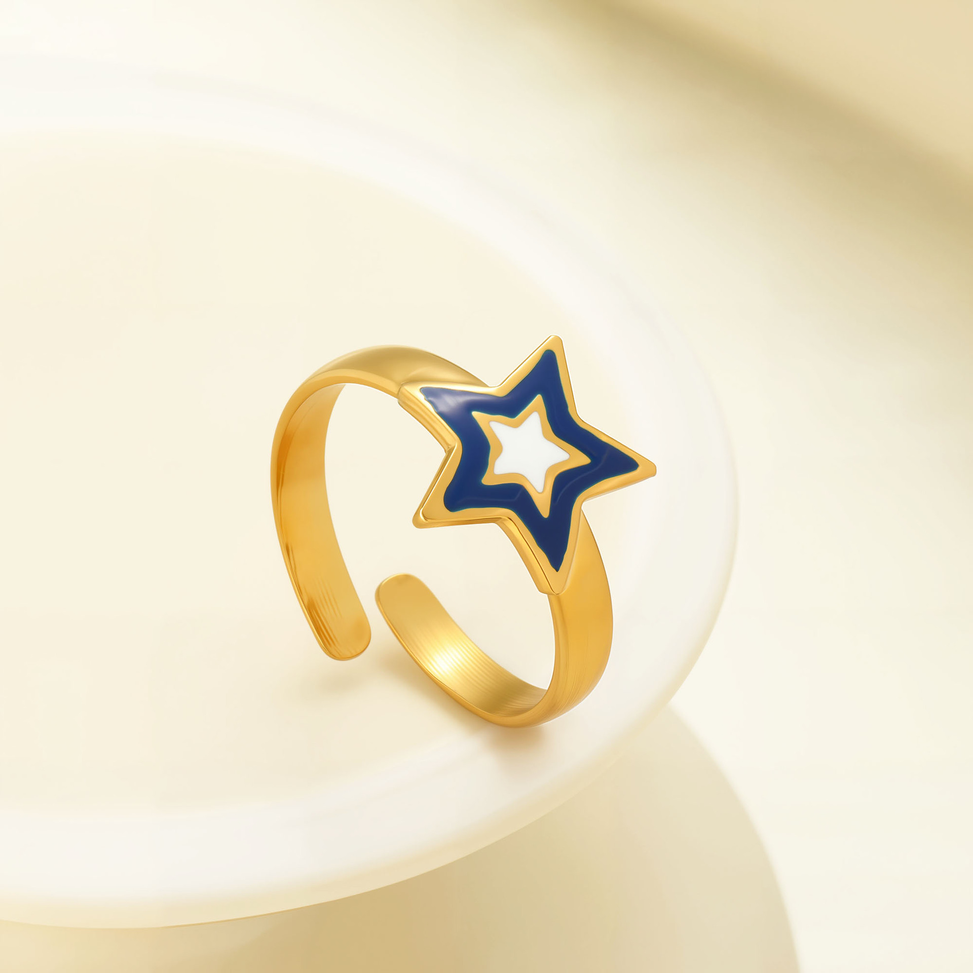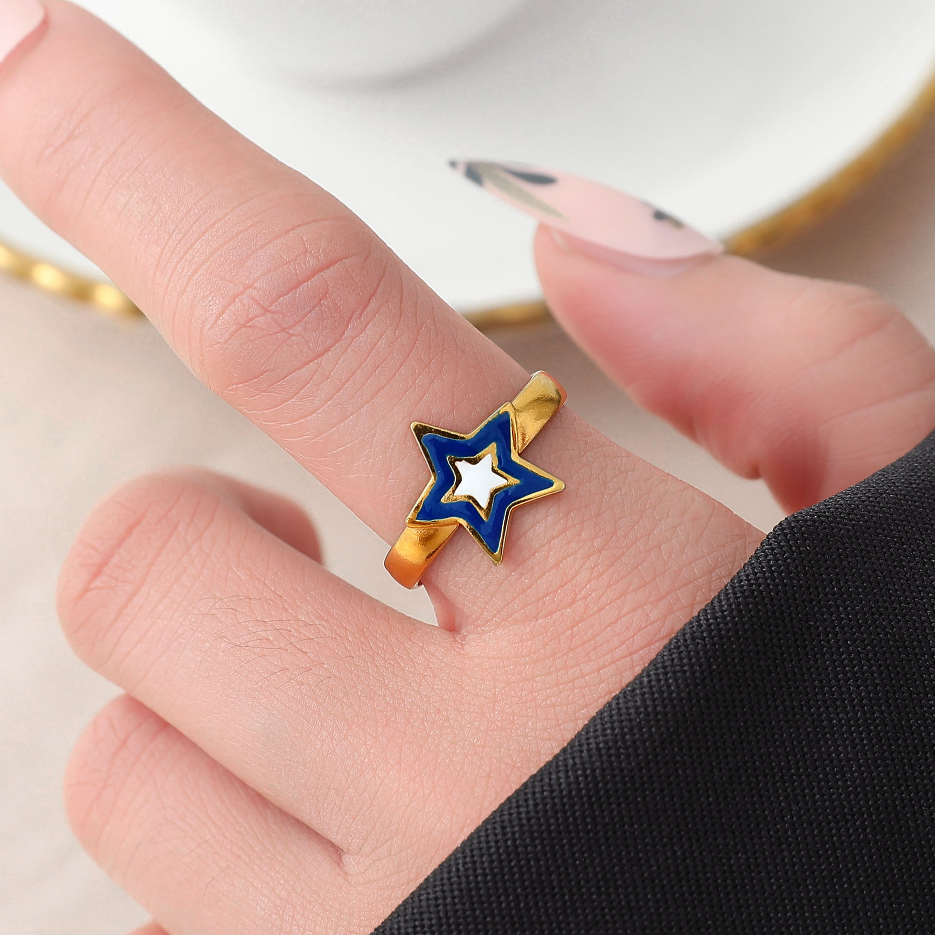 Émail Bague en Acier inoxydable , Acier inoxydable 304, étoile, Placage ionique sous vide, bijoux de mode & pour femme & émail, doré, Vendu par PC