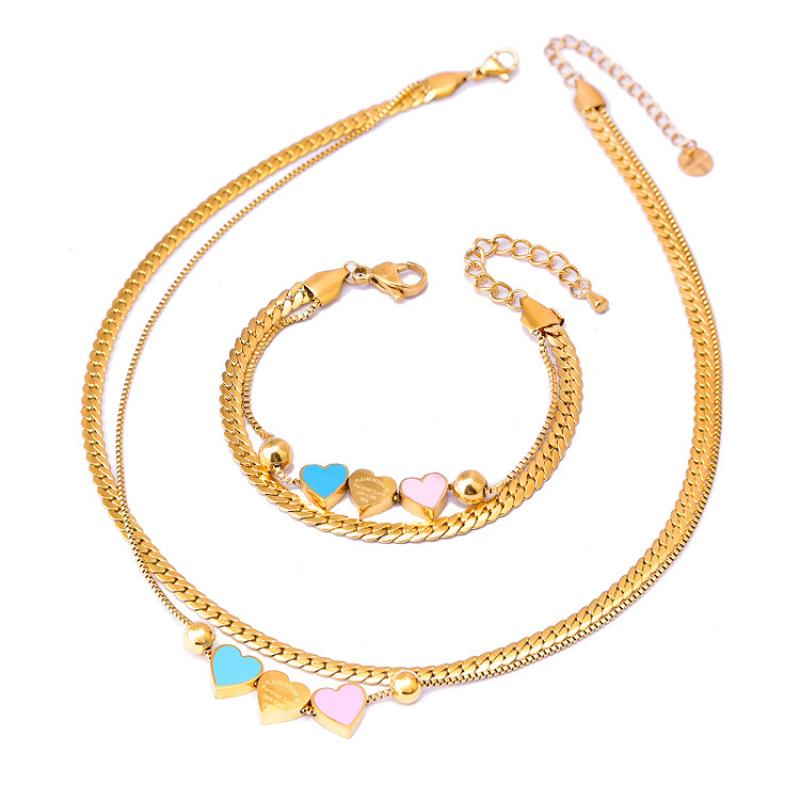 Ensemble de bijoux en acier de titane, Acier titane, avec 1.97inch,1.57inch chaînes de rallonge, coeur, Placage, Double couche & styles différents pour le choix & pour femme & émail, Or, Longueur:Environ 15.75 pouce, Environ 16.14 pouce, Environ 6.3 pouce, Vendu par PC