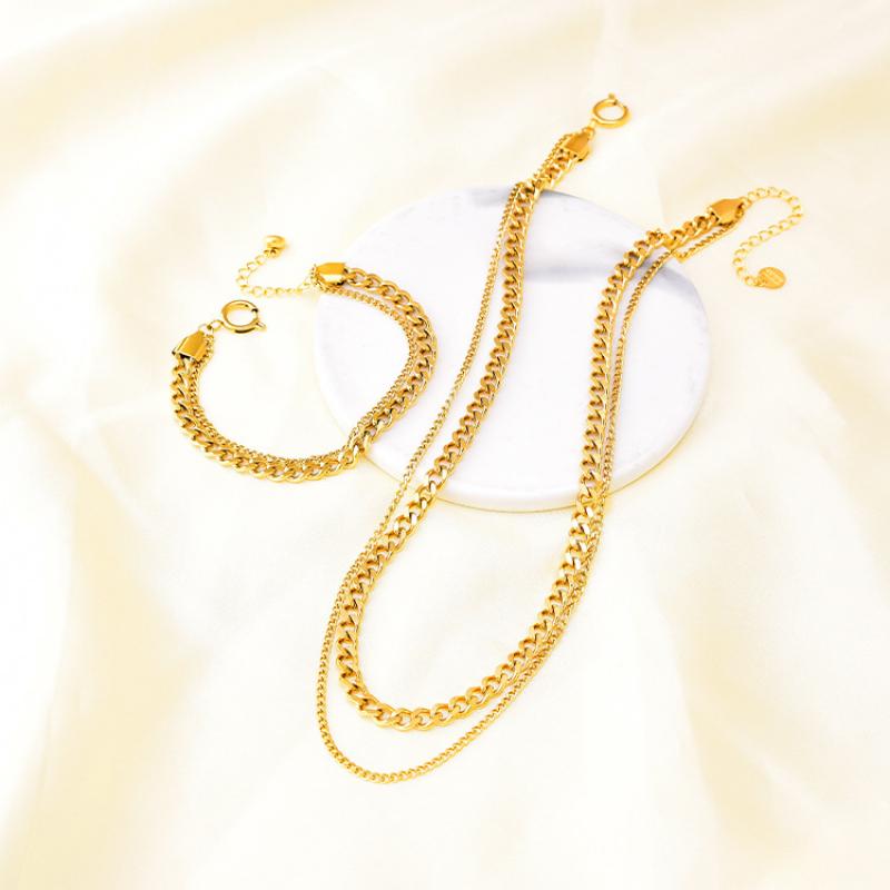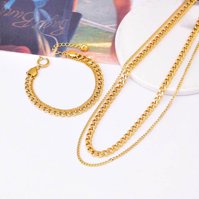 Ensemble de bijoux en acier de titane, Acier titane, avec 1.97inch,1.57inch chaînes de rallonge, Plaqué or 18K, Double couche & styles différents pour le choix & pour femme, doré, Longueur:Environ 15.75 pouce, Environ 16.93 pouce, Environ 6.3 pouce, Vendu par PC