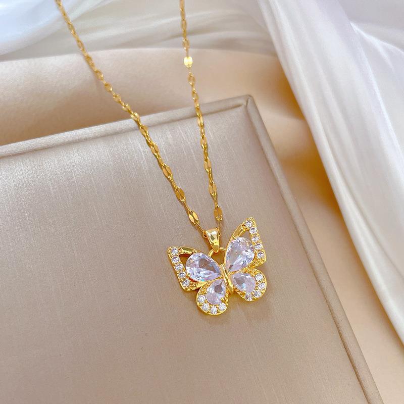 Ensemble de bijoux en acier de titane, Acier titane, avec laiton, avec 1.97inch chaînes de rallonge, papillon, Placage ionique sous vide, styles différents pour le choix & pavé de micro zircon & pour femme, doré, 20x19mm, Longueur:Environ 15.75 pouce, Vendu par PC