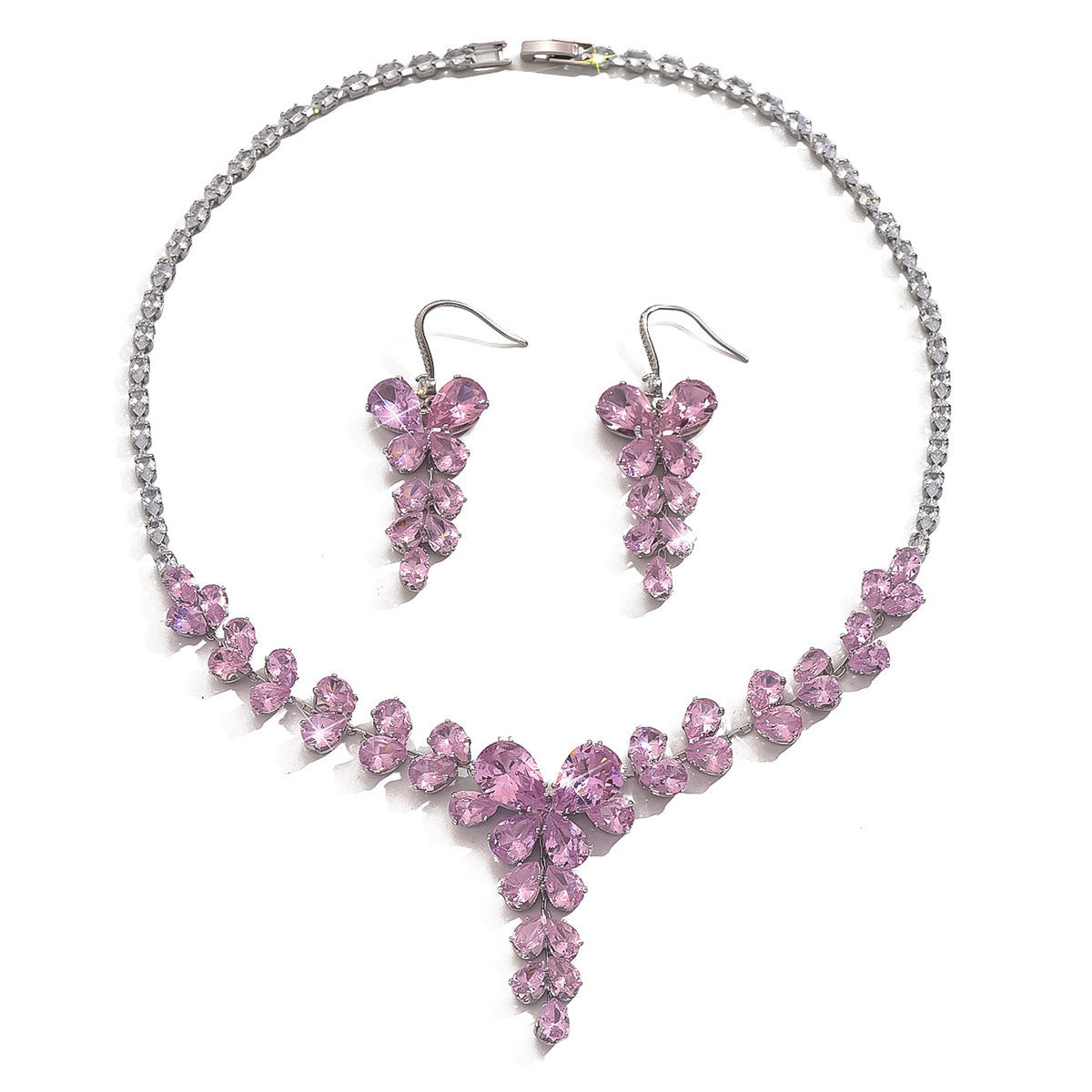 Ensemble de bijoux en cuivre, laiton, avec verre, Placage, 2 pièces & bijoux de mode & avec strass, rose, Vendu par fixé