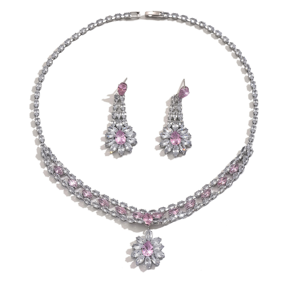Ensemble de bijoux en cuivre, laiton, boucle d'oreille & collier, Placage de couleur platine, avec strass   19inch pouce, Vendu par fixé