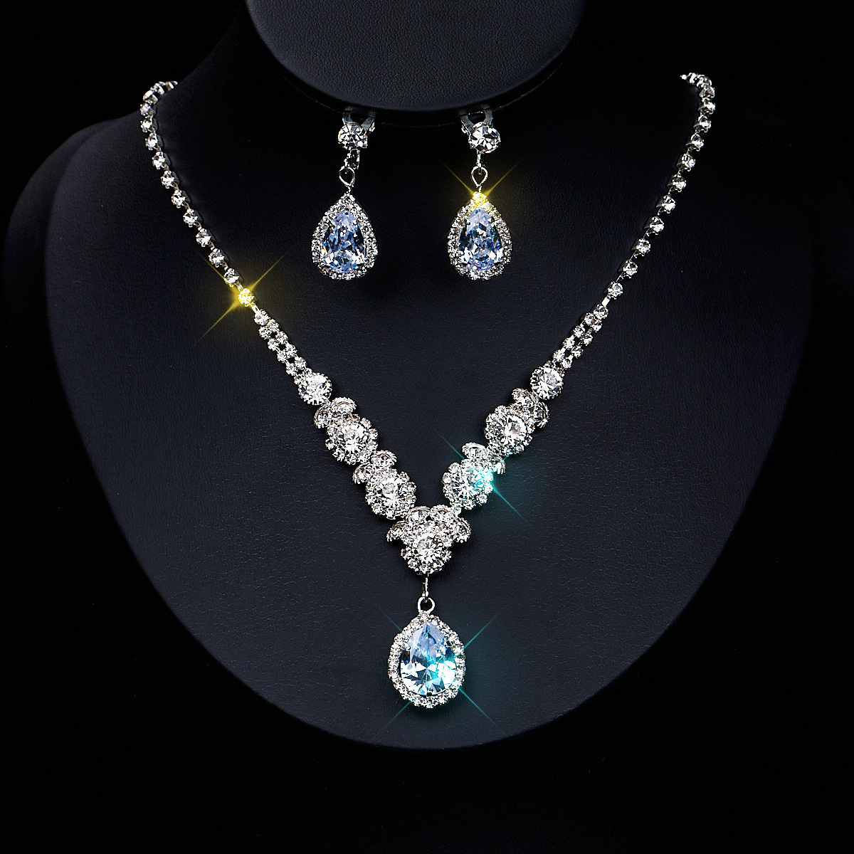 Ensemble de bijoux en cuivre, laiton, boucle d'oreille & collier, Placage de couleur platine, avec strass   19inch pouce, Vendu par fixé