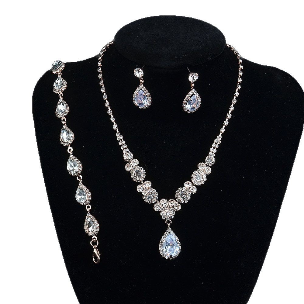 Ensemble de bijoux en cuivre, laiton, avec cristal, Placage, styles différents pour le choix & pour femme & avec strass, argent, Necklace :40-5cm Bracelet :16-5cm., Vendu par fixé